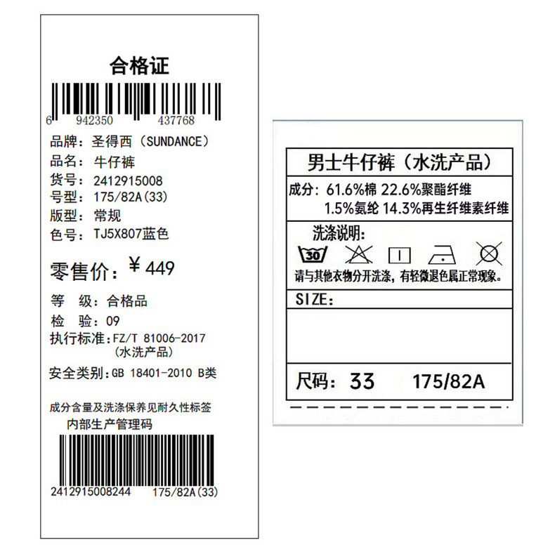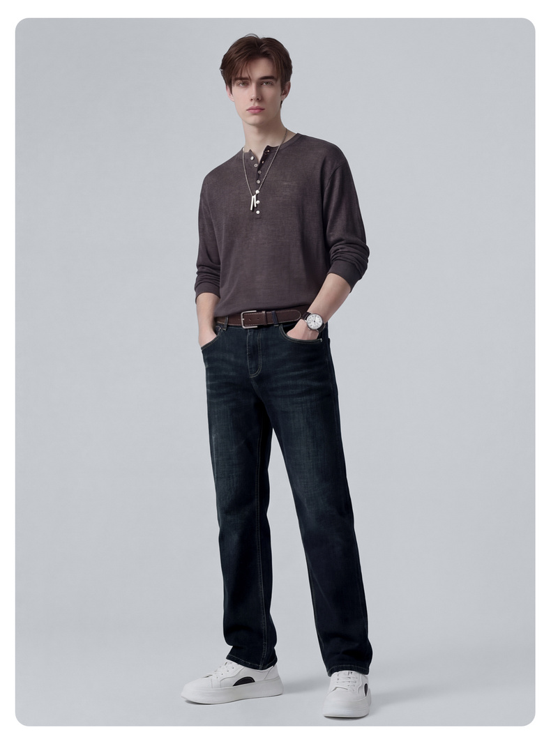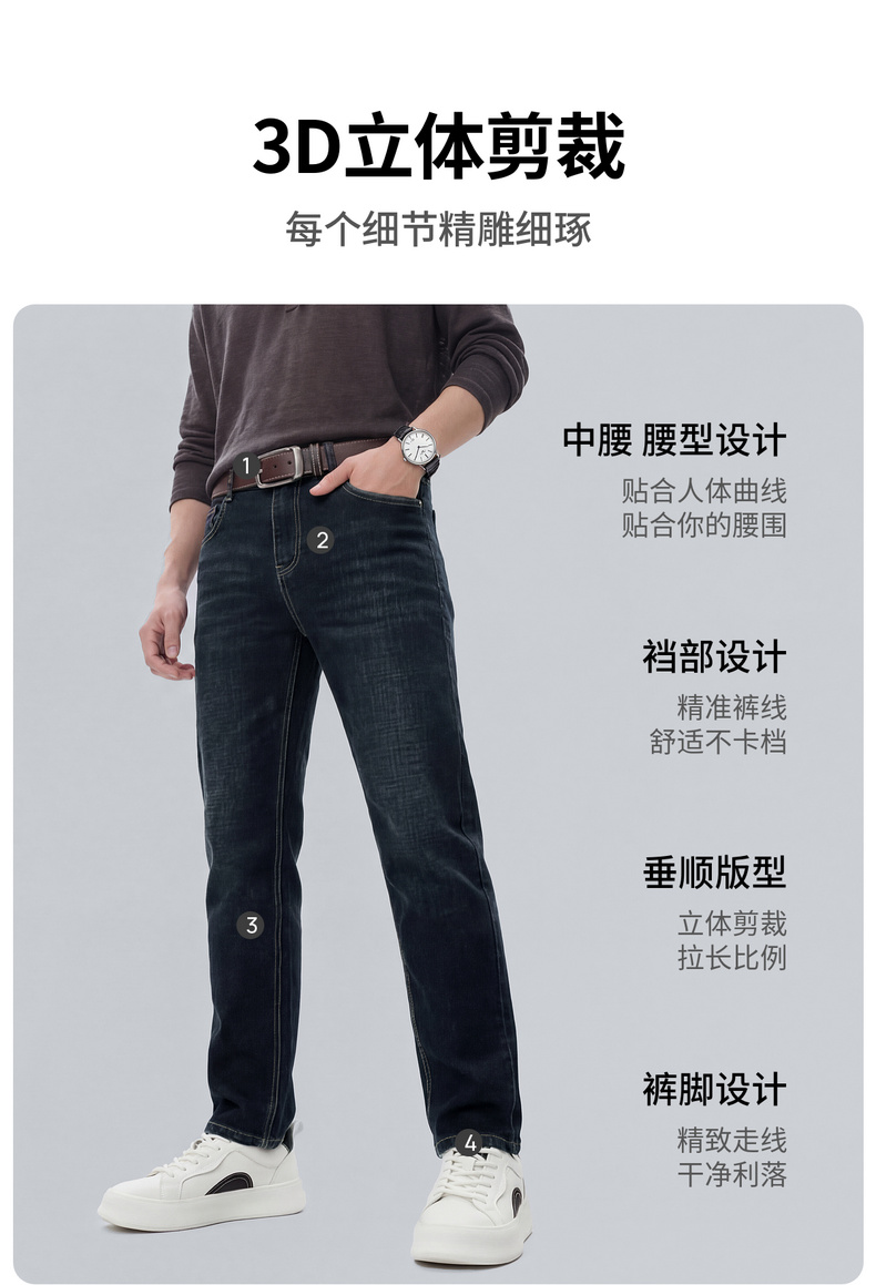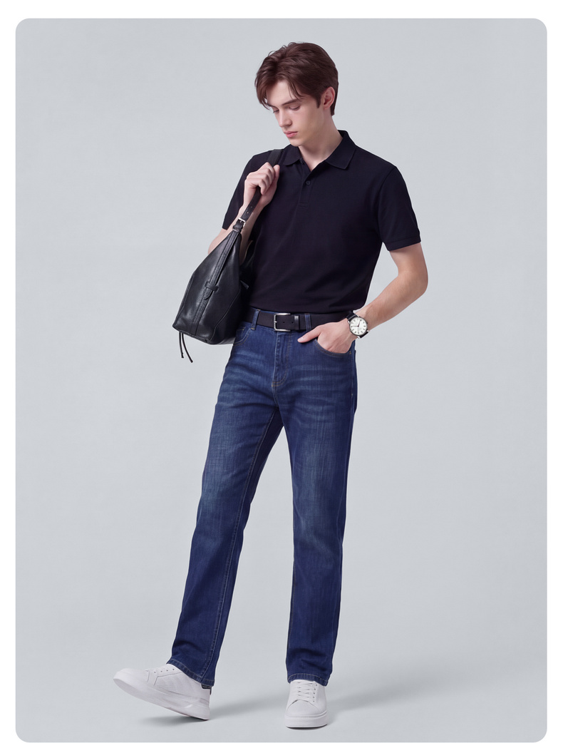 【含棉】圣得西牛仔裤男款2026新款春季日常百搭修身显瘦直筒长裤