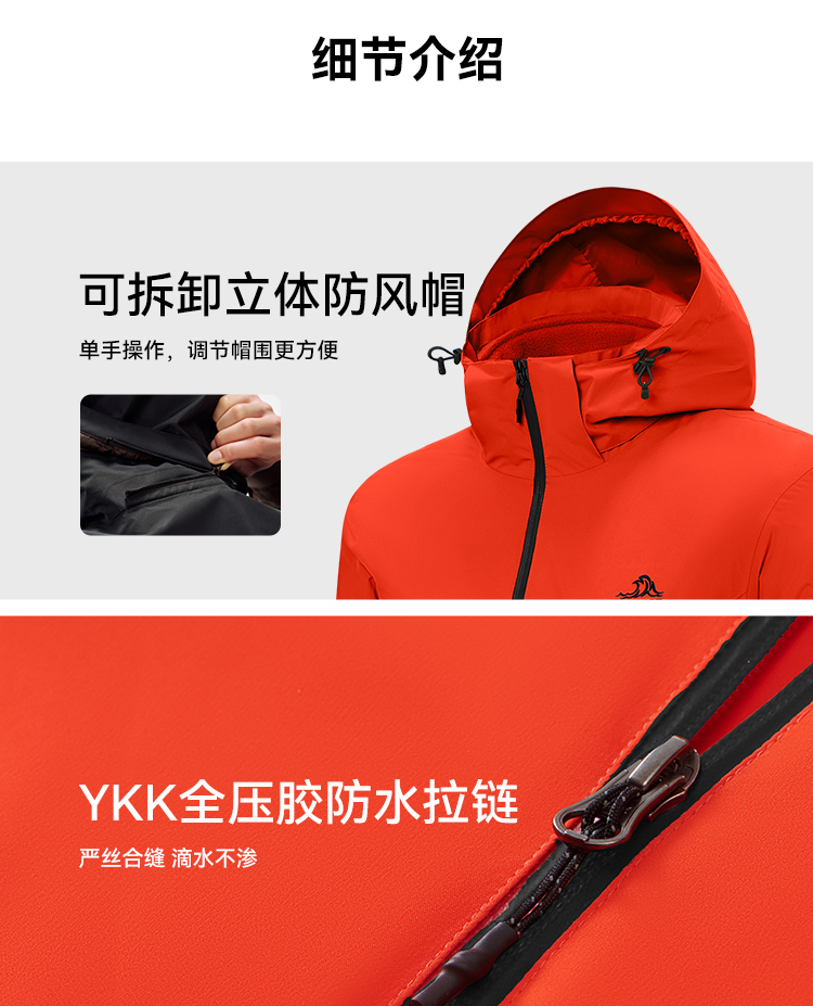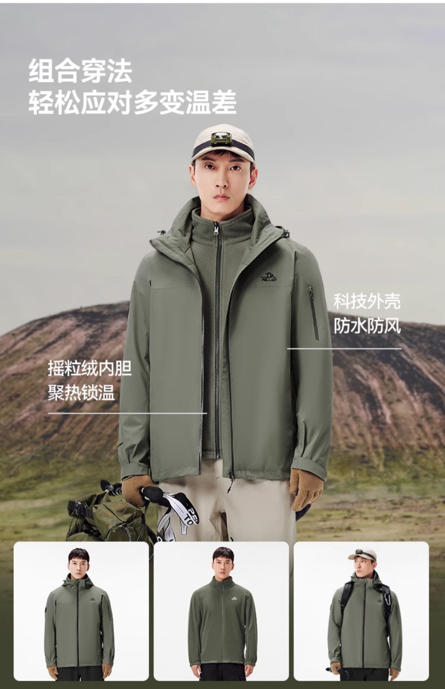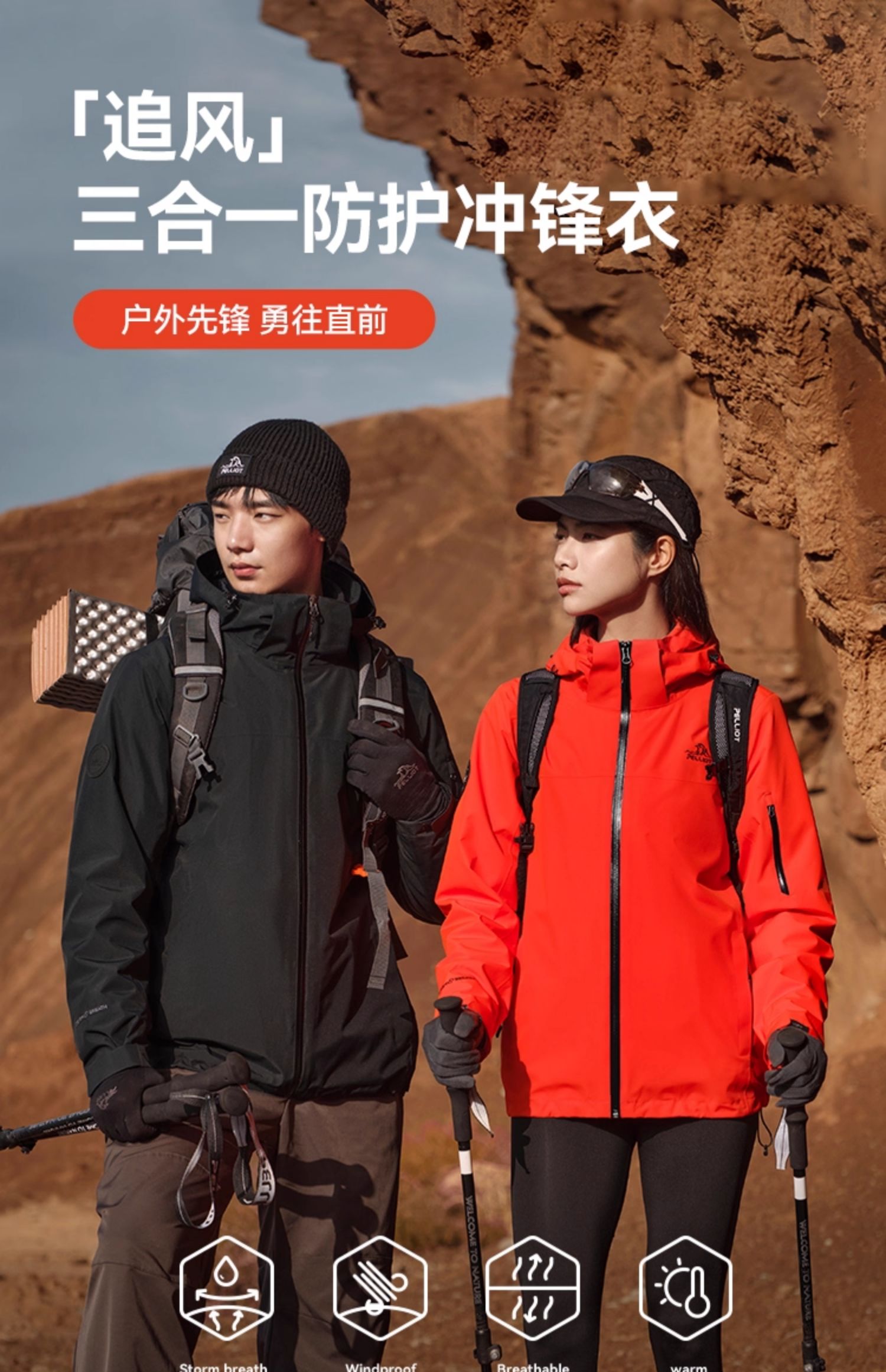 【追风】伯希和户外冲锋衣外套男新款三合一抓绒内胆女防风登山服