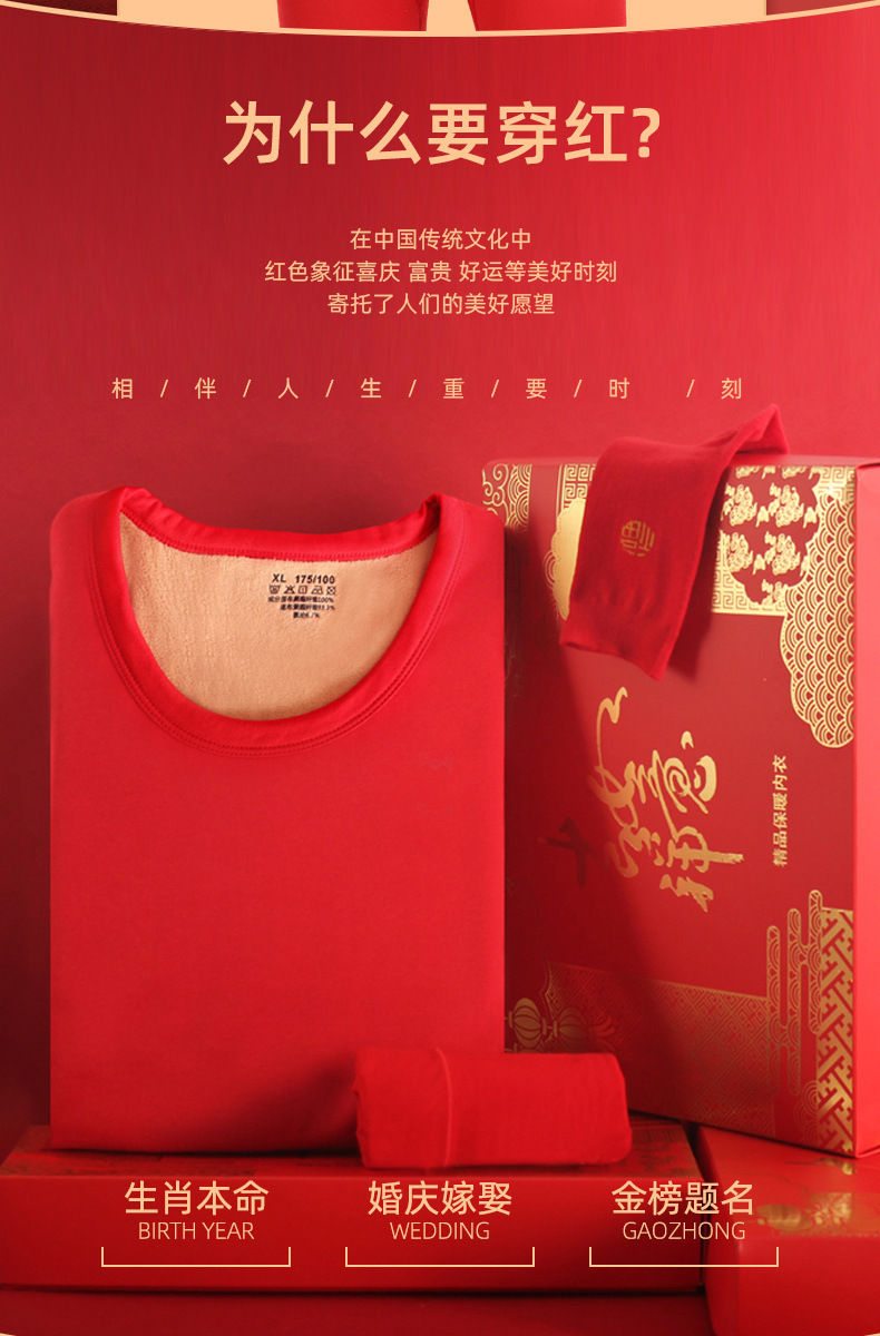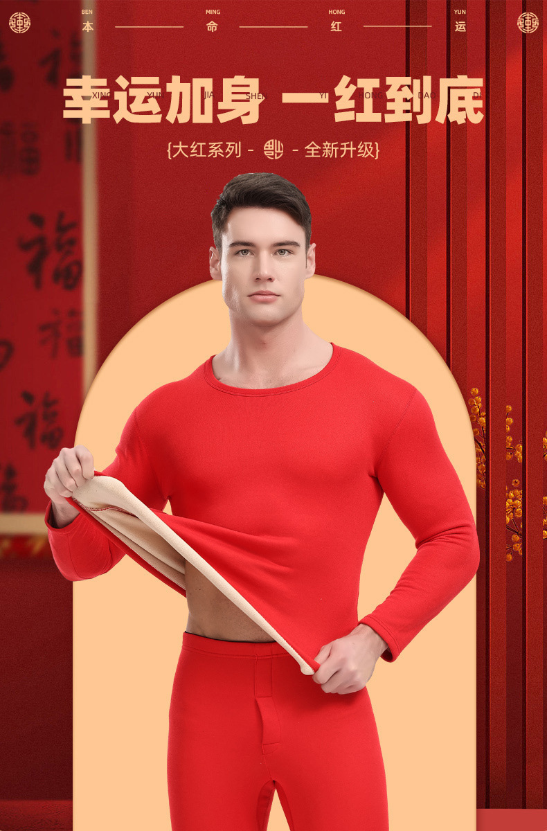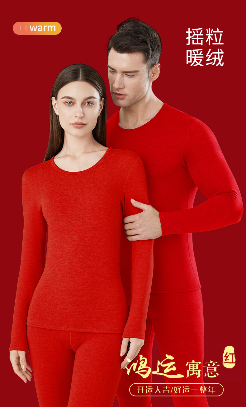 【吉祥如意❗️羊羔绒保暖套装】幸运加身,鸿运相伴!马年大红色本命年内衣男加绒加厚新婚红色秋衣秋裤女礼盒新年