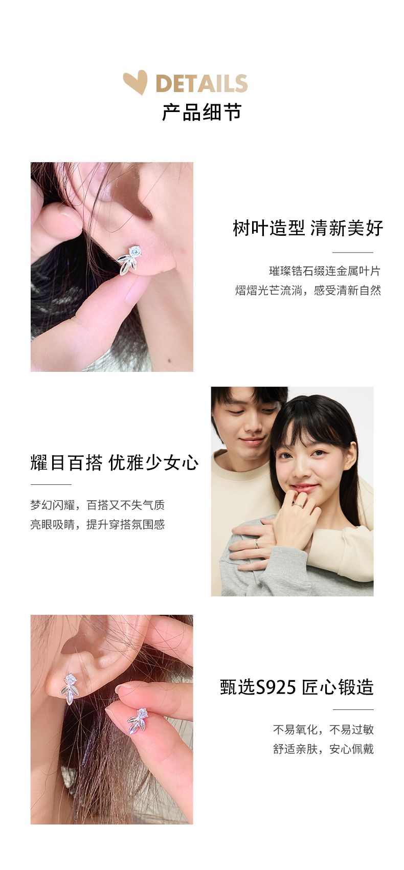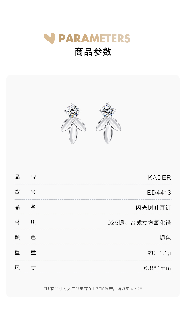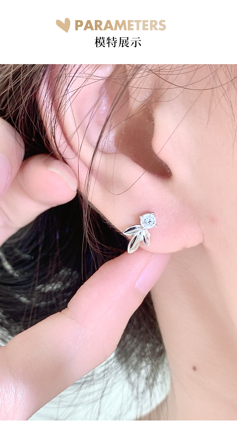 卡蒂罗/KADER 闪光树叶耳钉 轻奢时尚小众清新设计耳饰 大颗锆石梦幻闪耀配饰原创高级感璀璨百搭养耳洞 925银 送女友