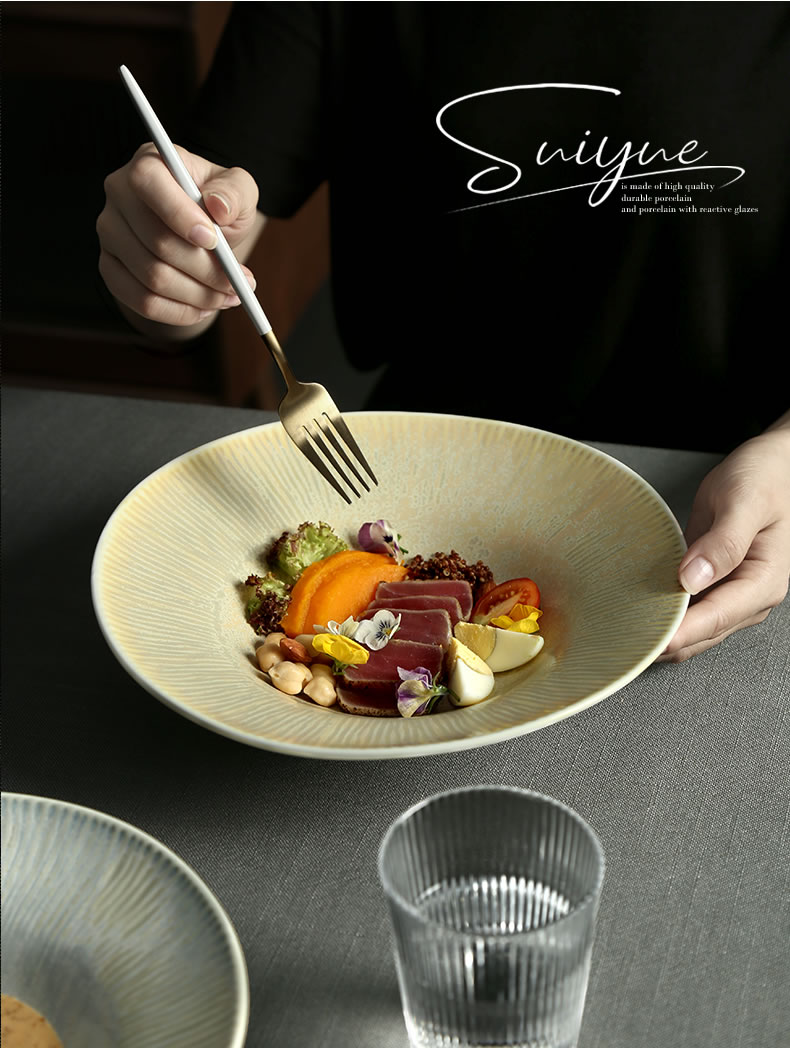 DXC不规则陶瓷西餐盘子家用 2022新款网红特别好看的草帽餐盘深盘