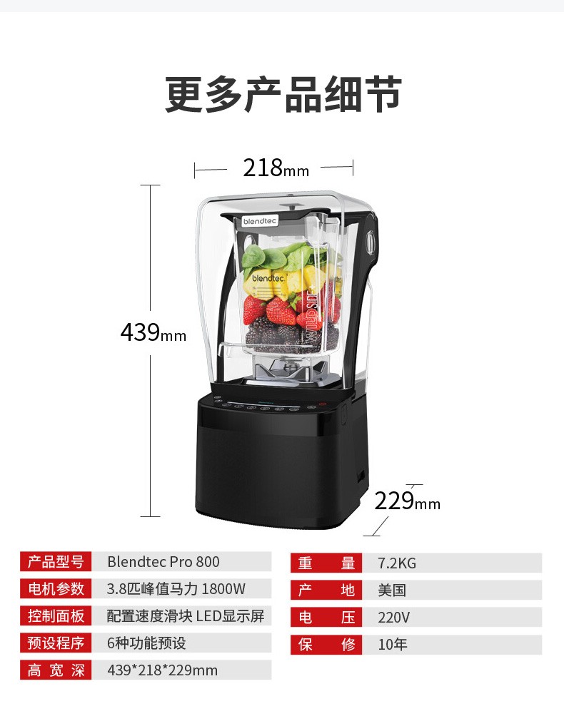 Blendtec 原装进口 破壁机 多功能家用料理机 奢华隔音款P800