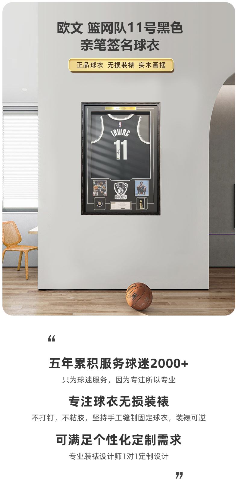 收藏系列 欧文 篮网队11号黑色 亲笔签名球衣
