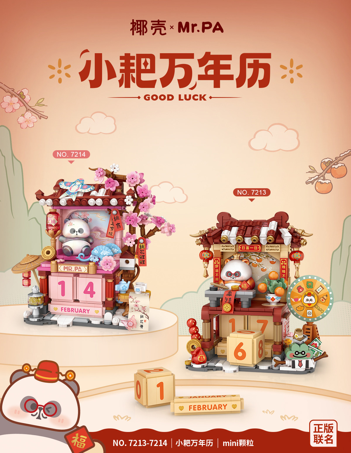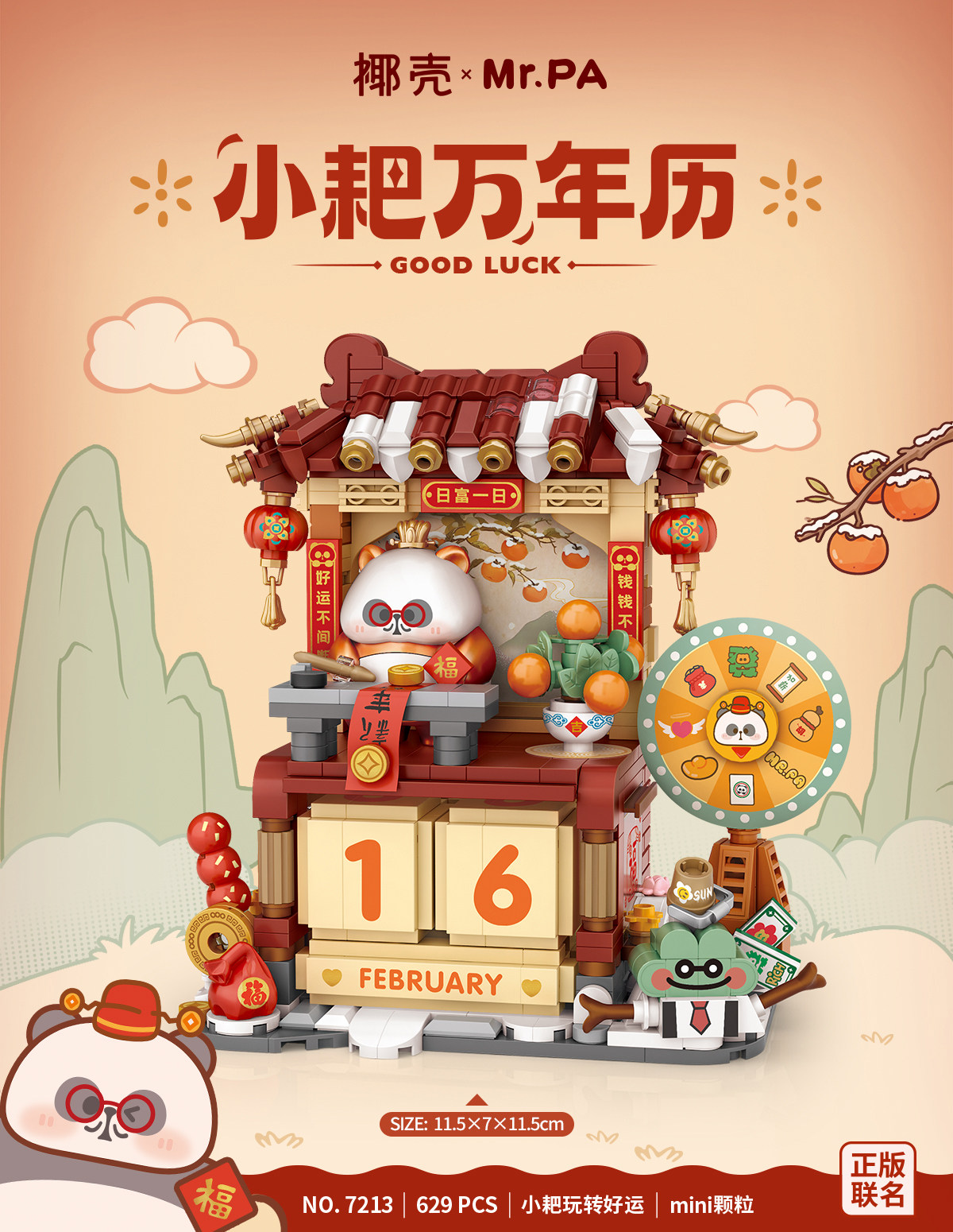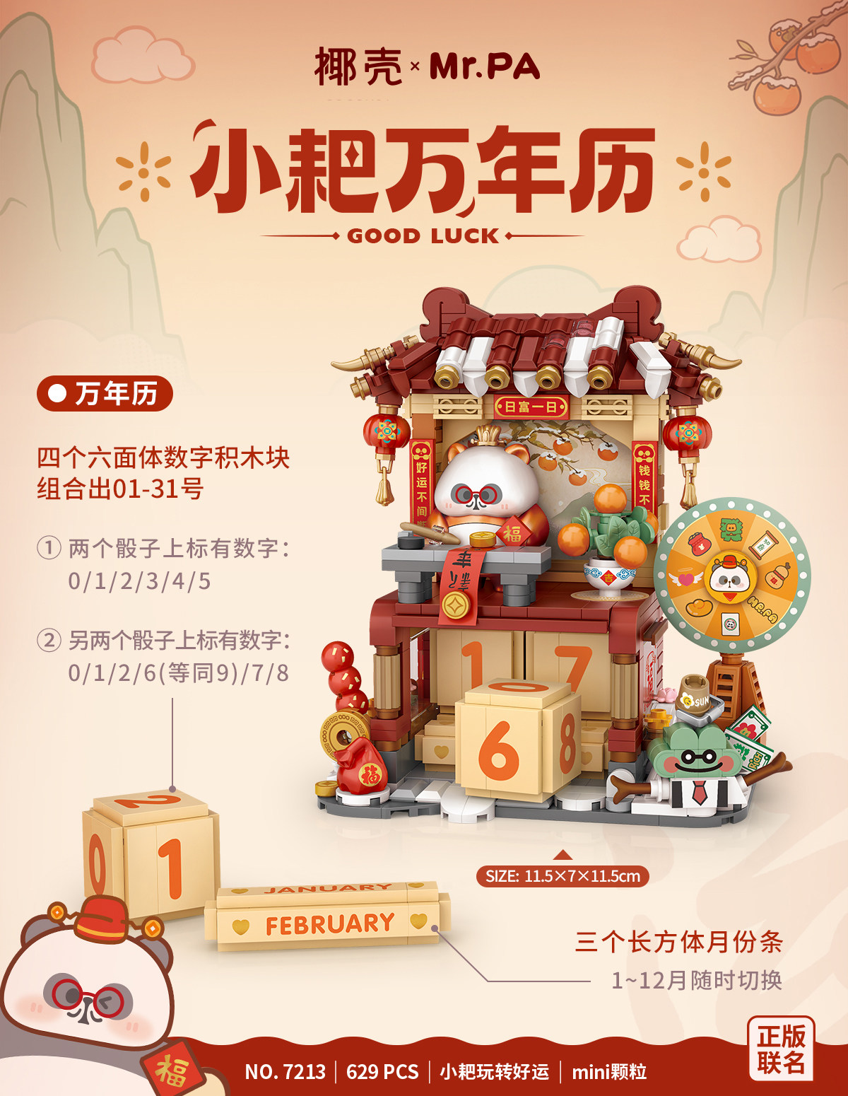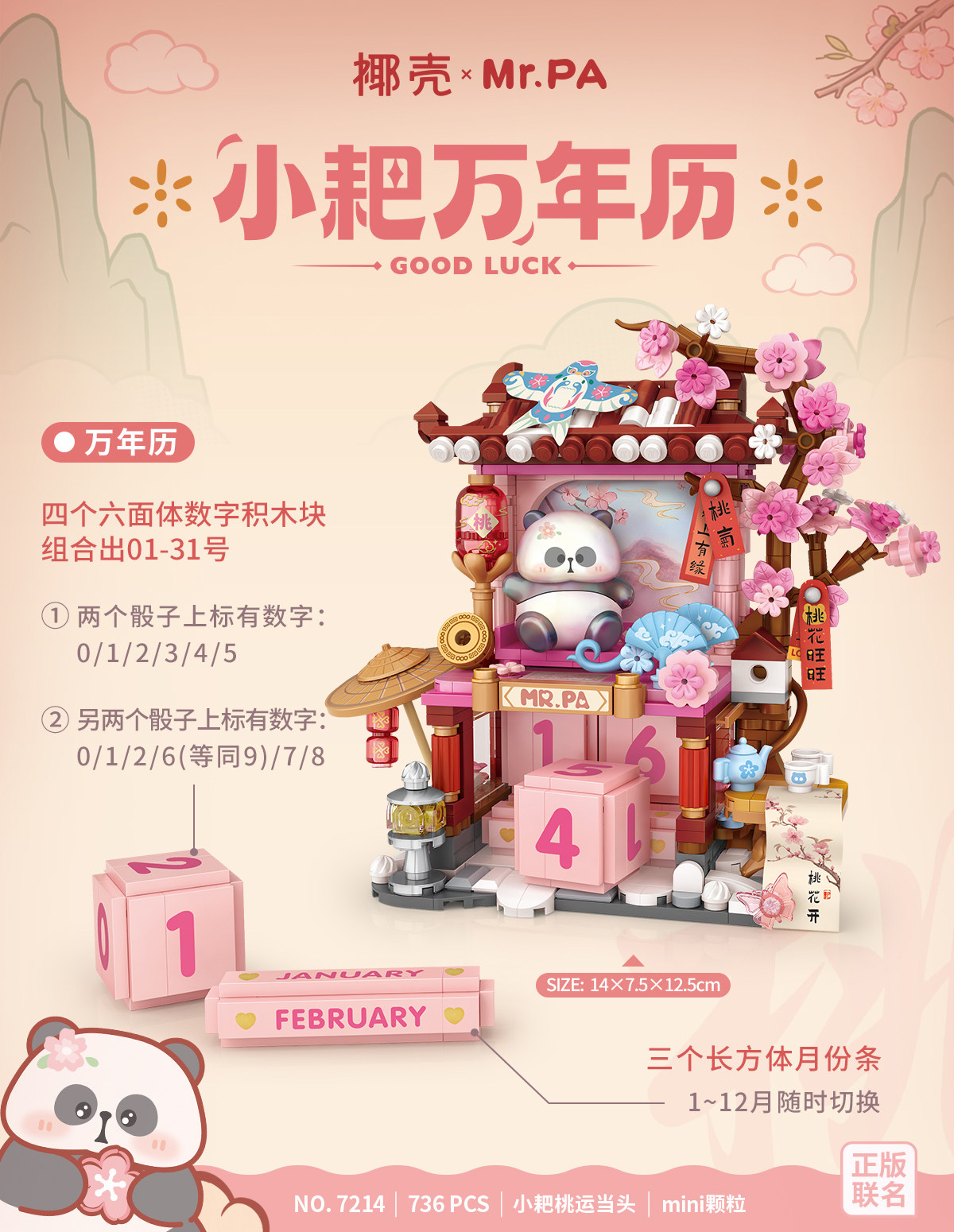 【可转动的万年历积木】椰壳&Mr.PA LOZ俐智小耙万年历 万年历街景耙老师 熊猫益智玩具拼装 日历新年玩具