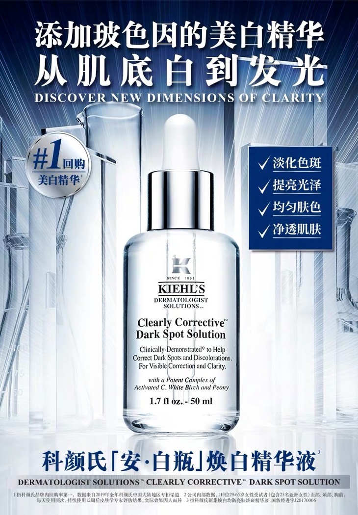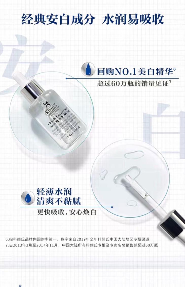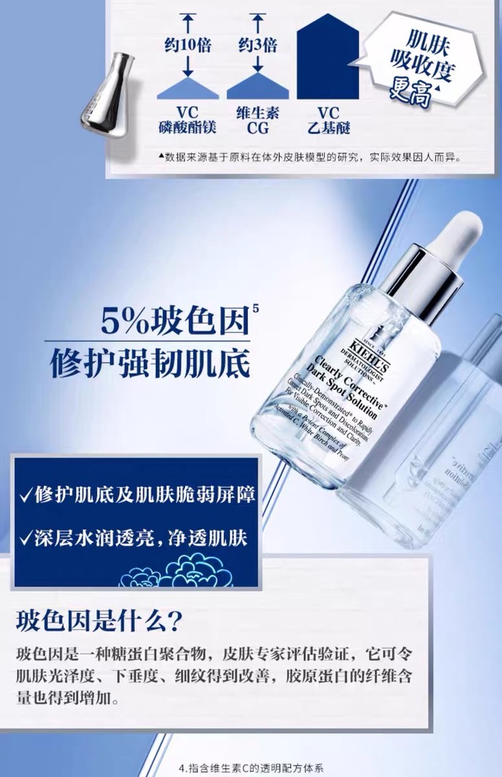 1、产品名称:kiehls科颜氏集焕白均衡亮肤淡斑精华液