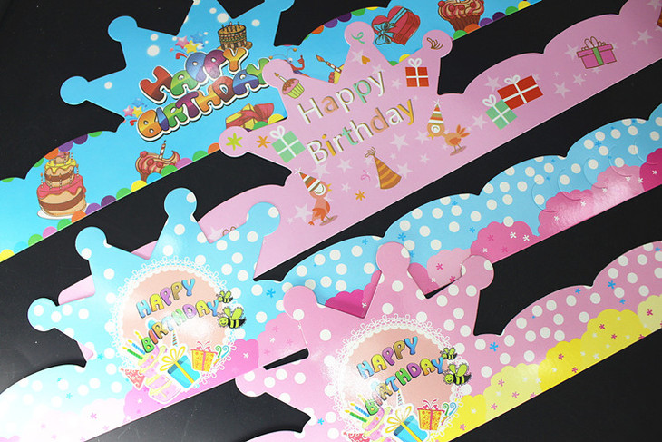 生日帽(单个) 纸卡生日帽 粉/蓝/红 皇冠生日帽 多款随机发