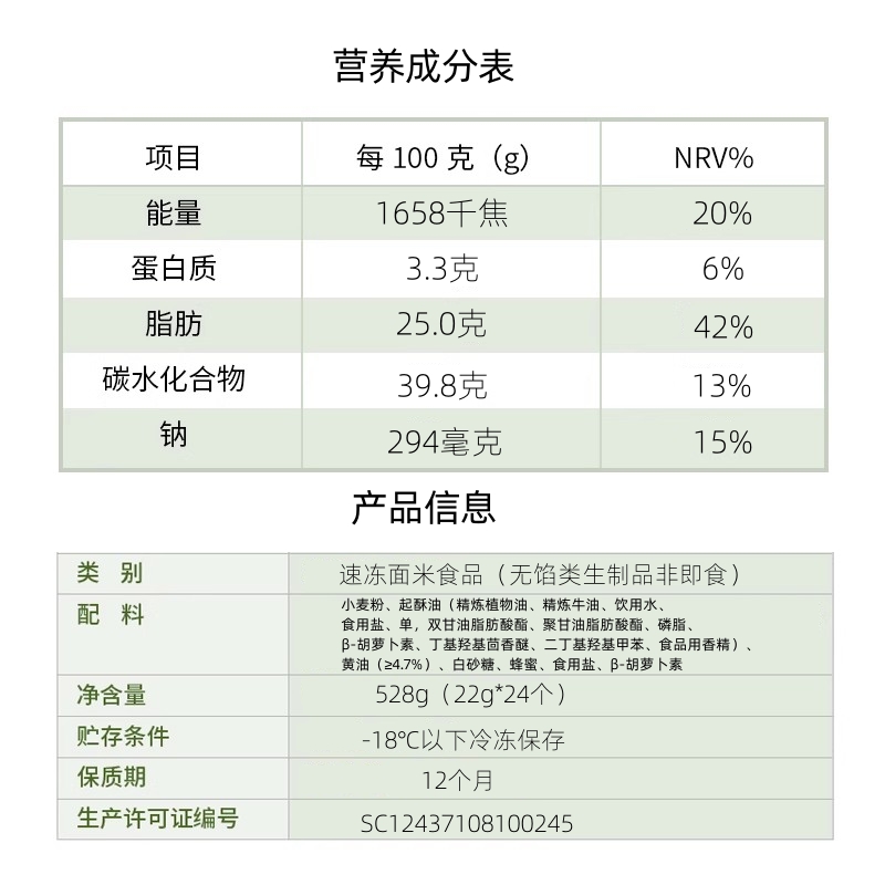 24个装 壹鹏手工蛋挞皮 4.0升级黄油手工挞 冷冻蛋挞酥皮 528g(22g*24个)
