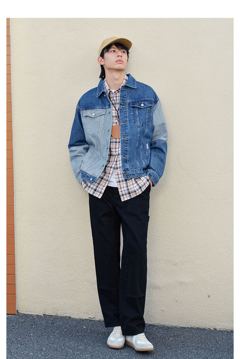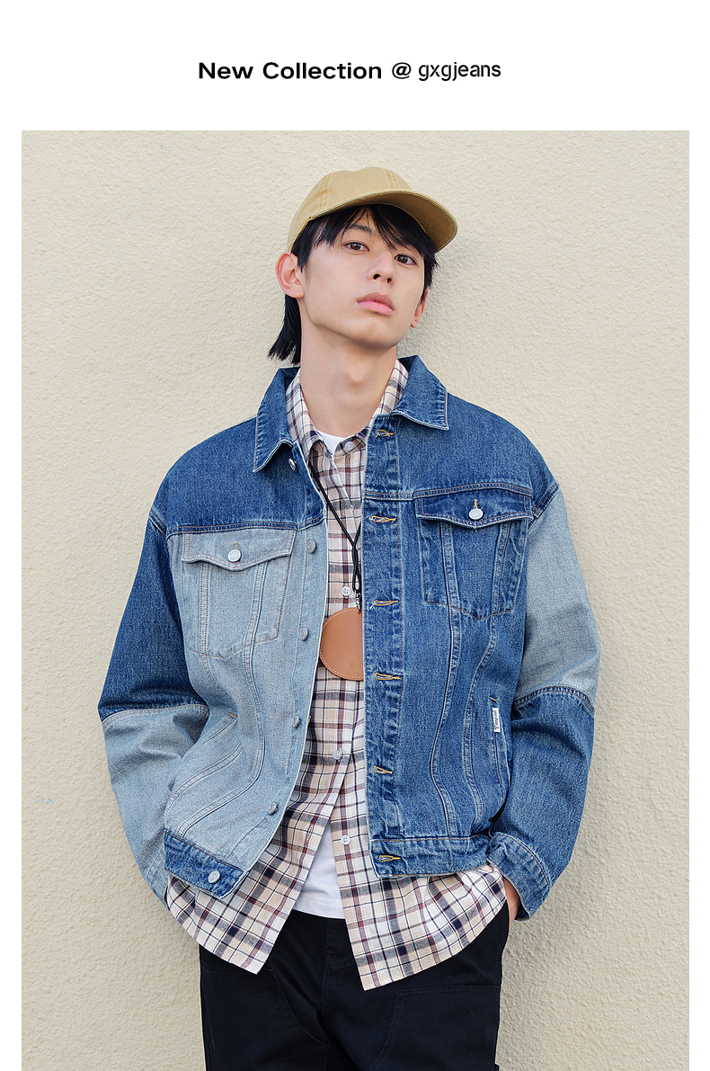 gxg.jeans男装2024年春季热卖翻领撞色拼接 牛仔夹克JHF1E800391