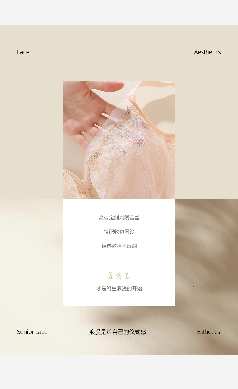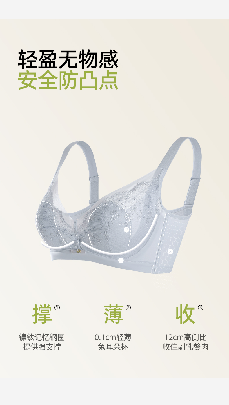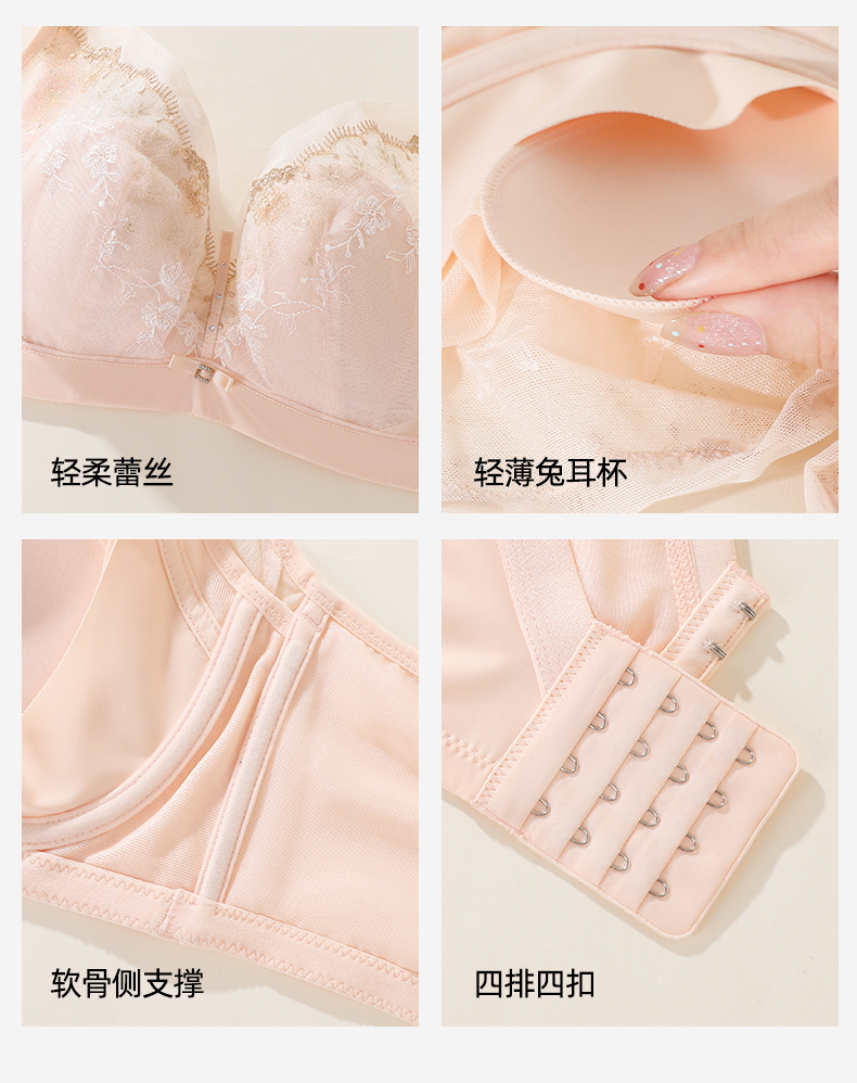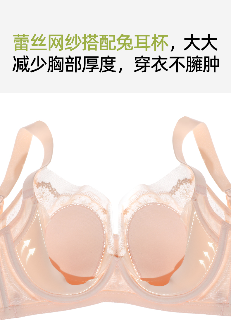 【商场同款】熳洁儿 大胸显小云感棉兔耳朵杯性感蕾丝记忆钢圈薄款秘境花园系列CD杯23701302