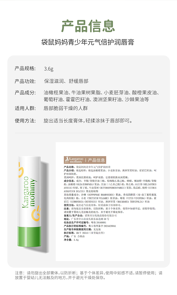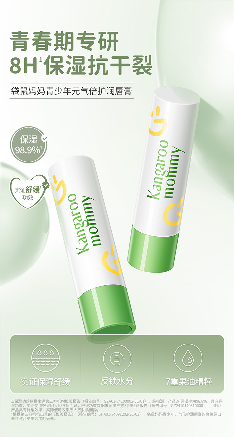 【青少年保湿唇膏】两支仅需29 改善唇部干裂 8h强保湿 袋鼠妈妈青少年元气保湿润唇膏3.6g