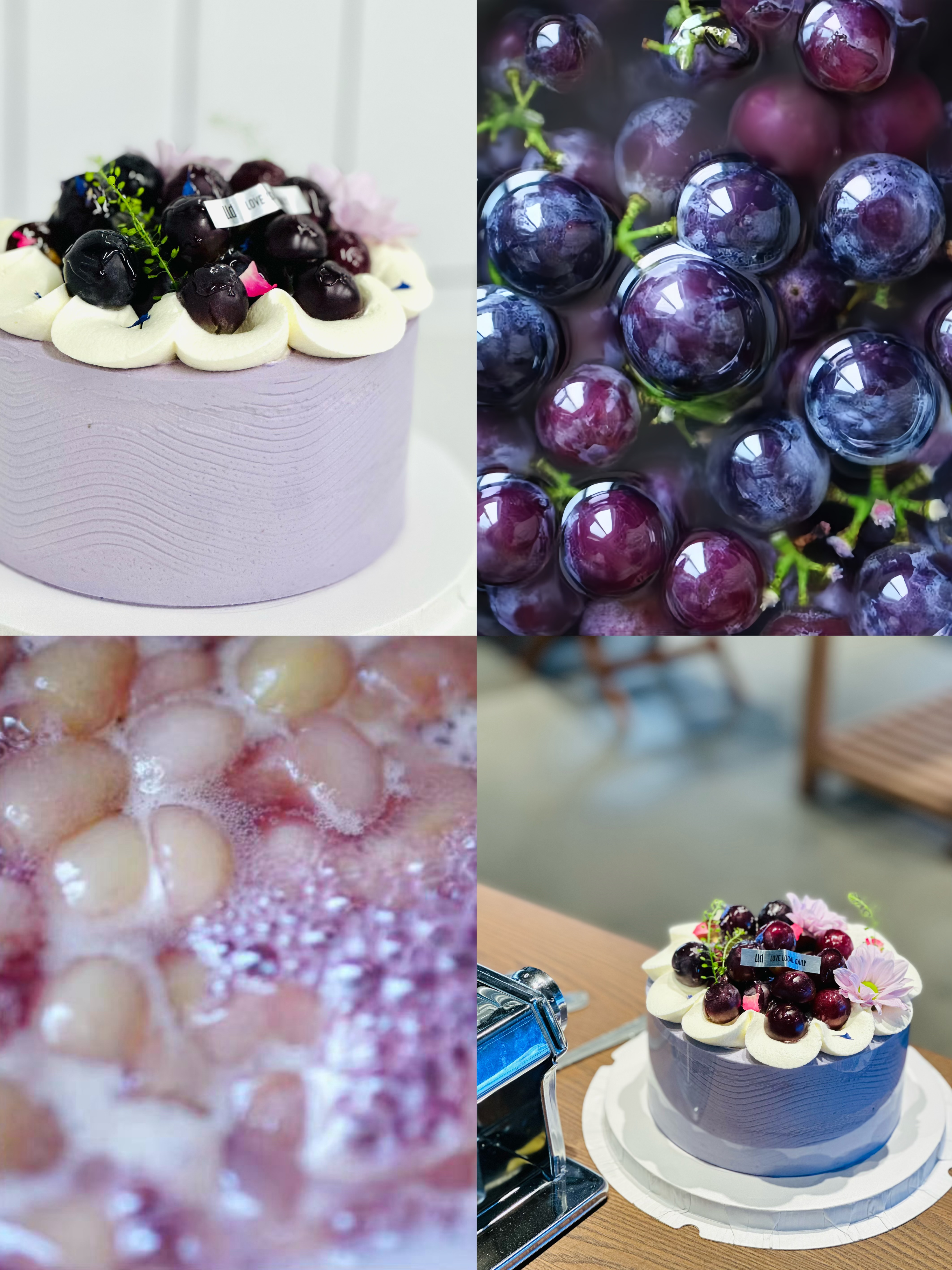 不加任何色素,奶油它真的不会那么紫(即使了葡萄皮的紫色以及果茸加入熬了很紫的果酱,葡萄果酱也好难熬),但是很柔和,所以就靠葡萄本身来保持紫色调~