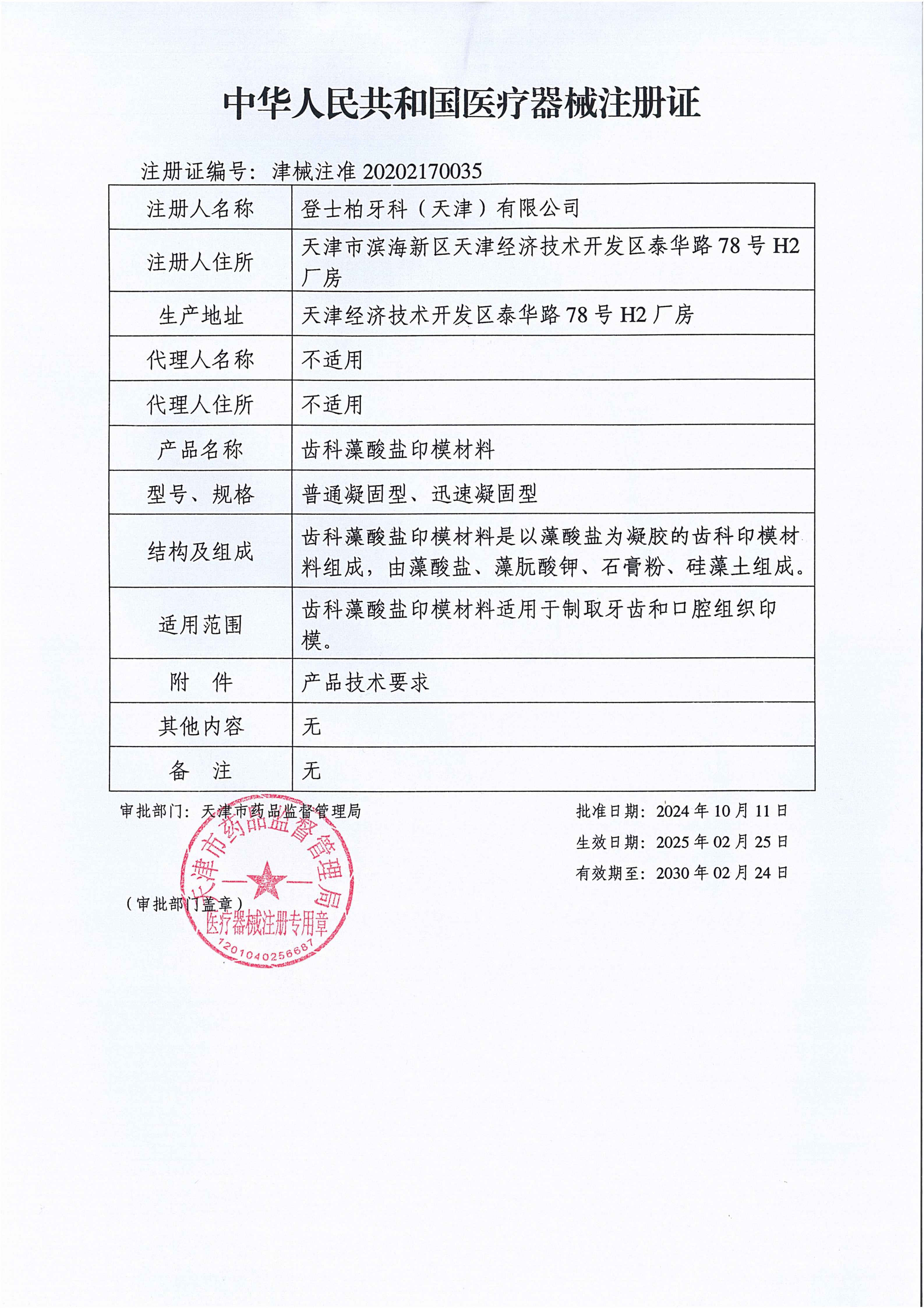 注册编号:津械注准20202170035