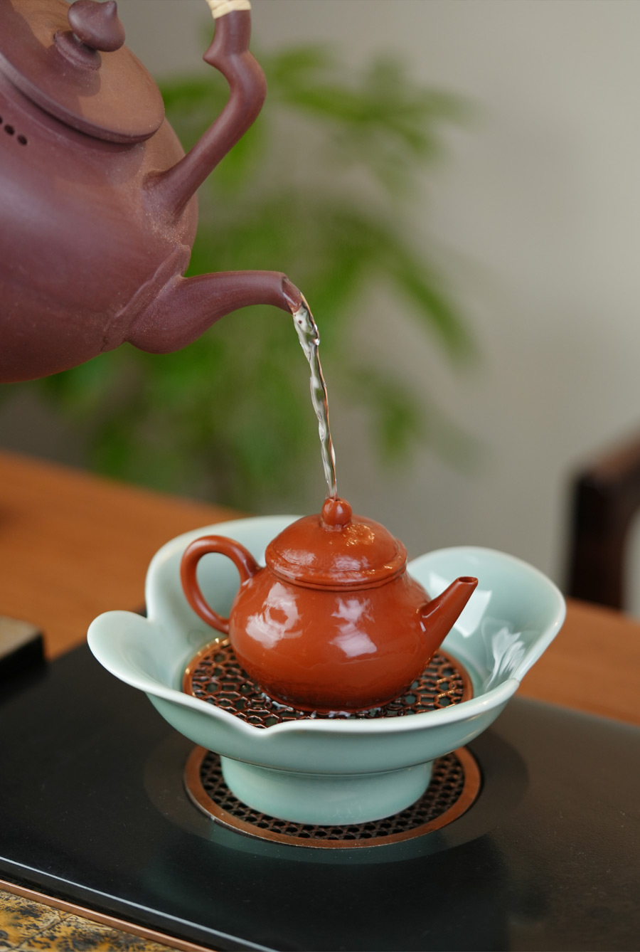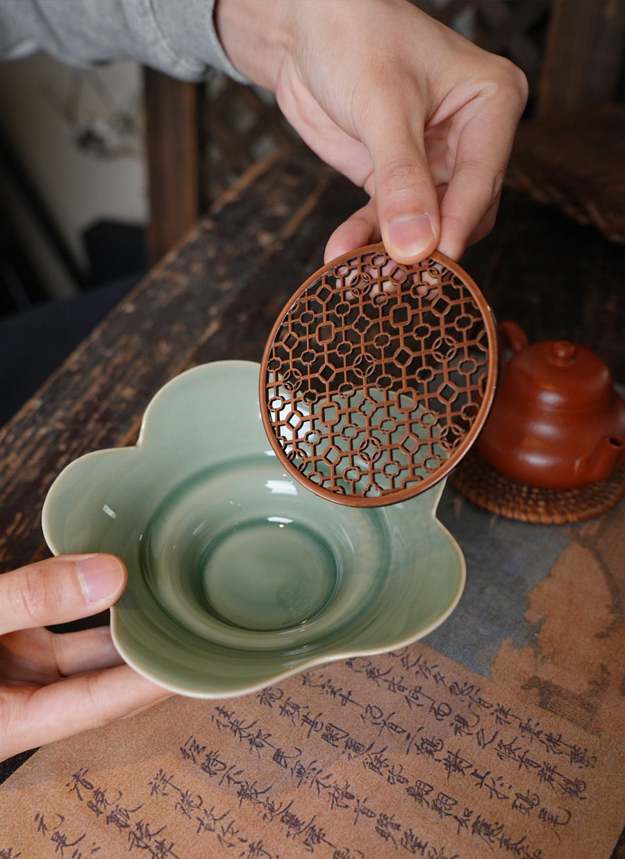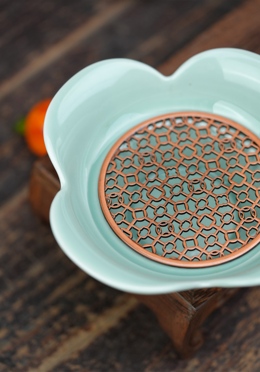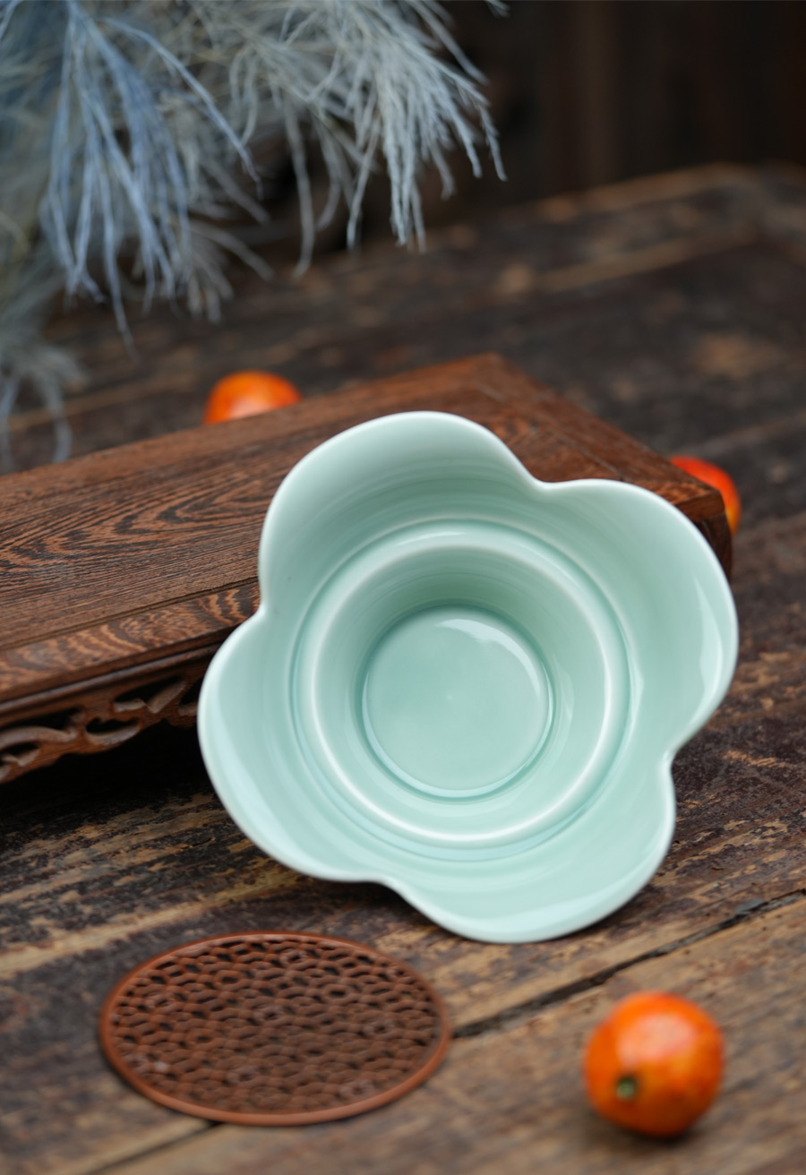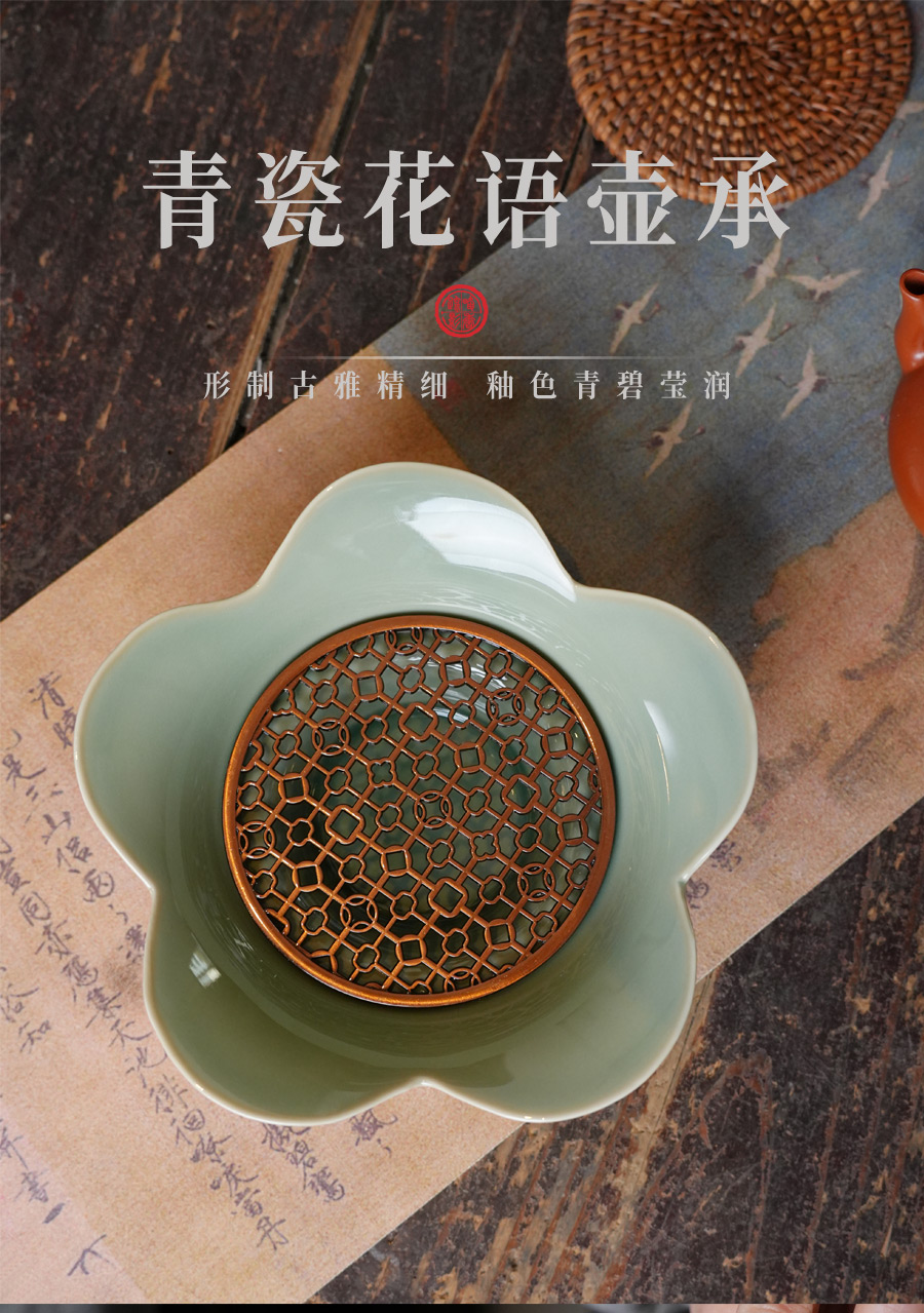 青瓷花语壶承/干泡盘复古花口合金垫片茶盘茶壶托功夫茶具