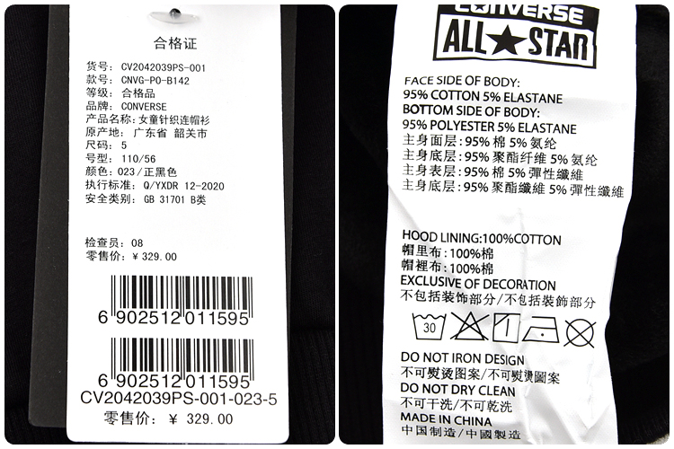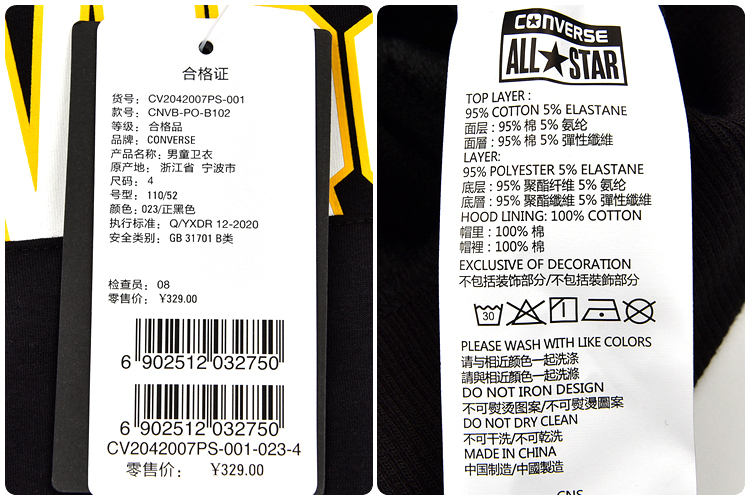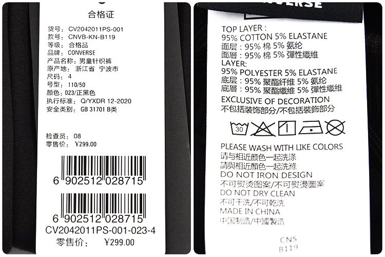 CONVERSE匡威冬男女儿童加绒卫衣长裤子CV2042007/CV2042039/CV2042011