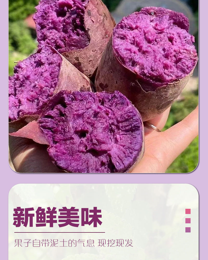 【存放】到货后请第一时间开箱检查,夏季天热尽快取件并取出紫薯放置于通风干燥处。长时间未取快递或者不当存放造成的损失不承担