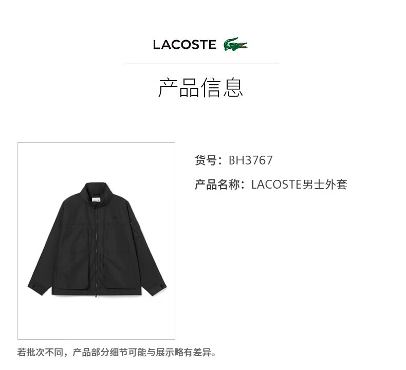 Lacoste法国鳄鱼男装新款时尚百搭拉链夹克外套BH3767-98
