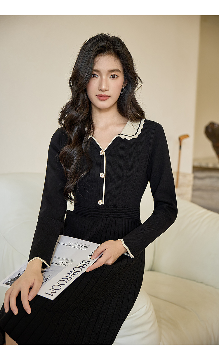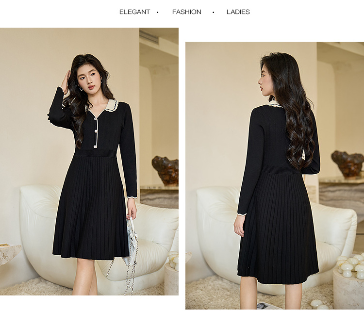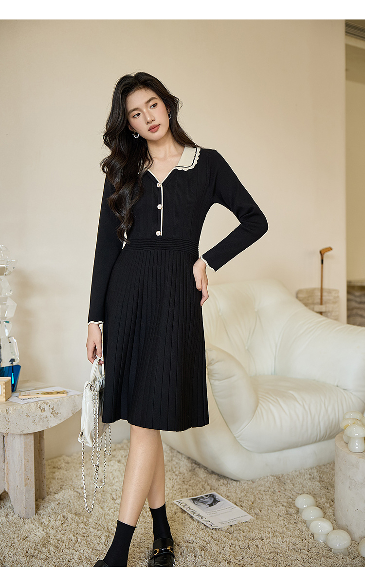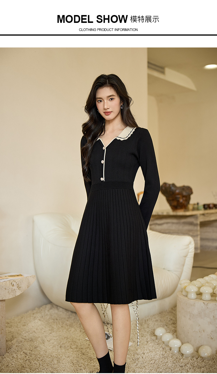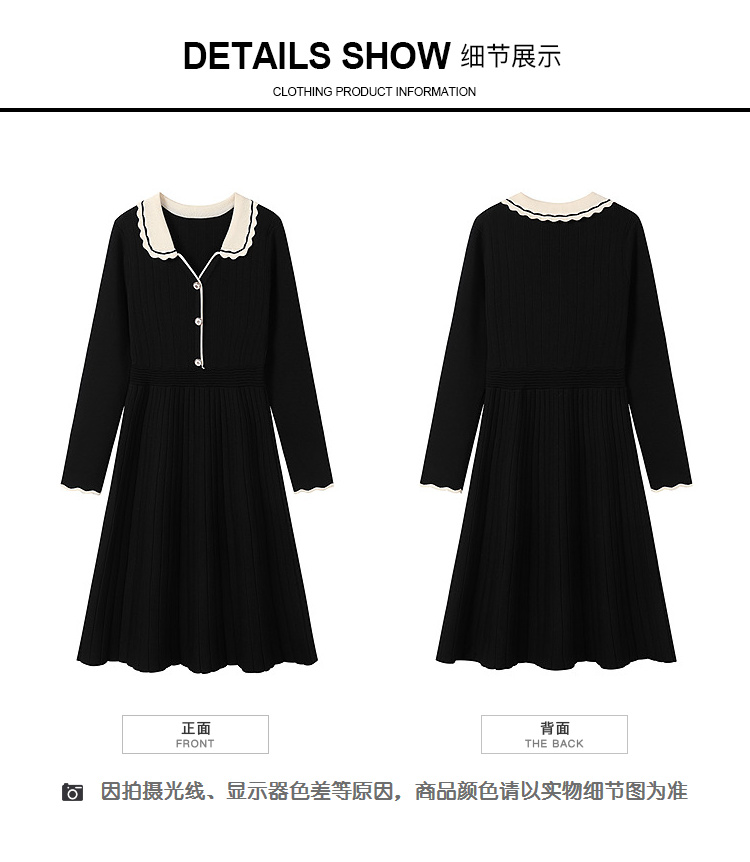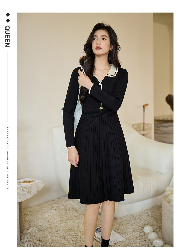 奢姿大码女装2026秋季胖妹妹时尚减龄花边设计娃娃领针织连衣裙9853891000