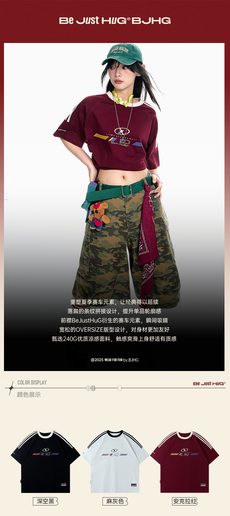 BJHG不计后果 泽西风复古t恤短袖女夏季2025新款凉感黑色短袖上衣