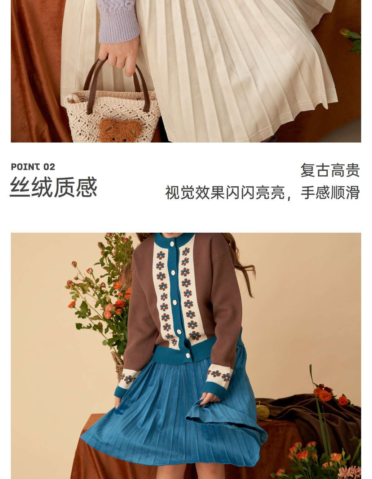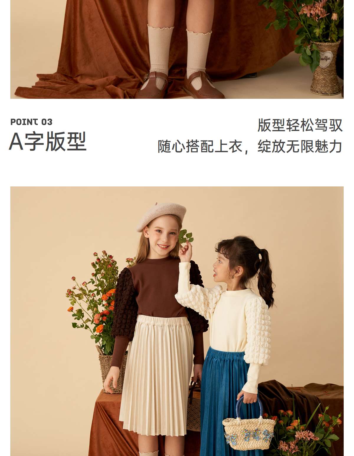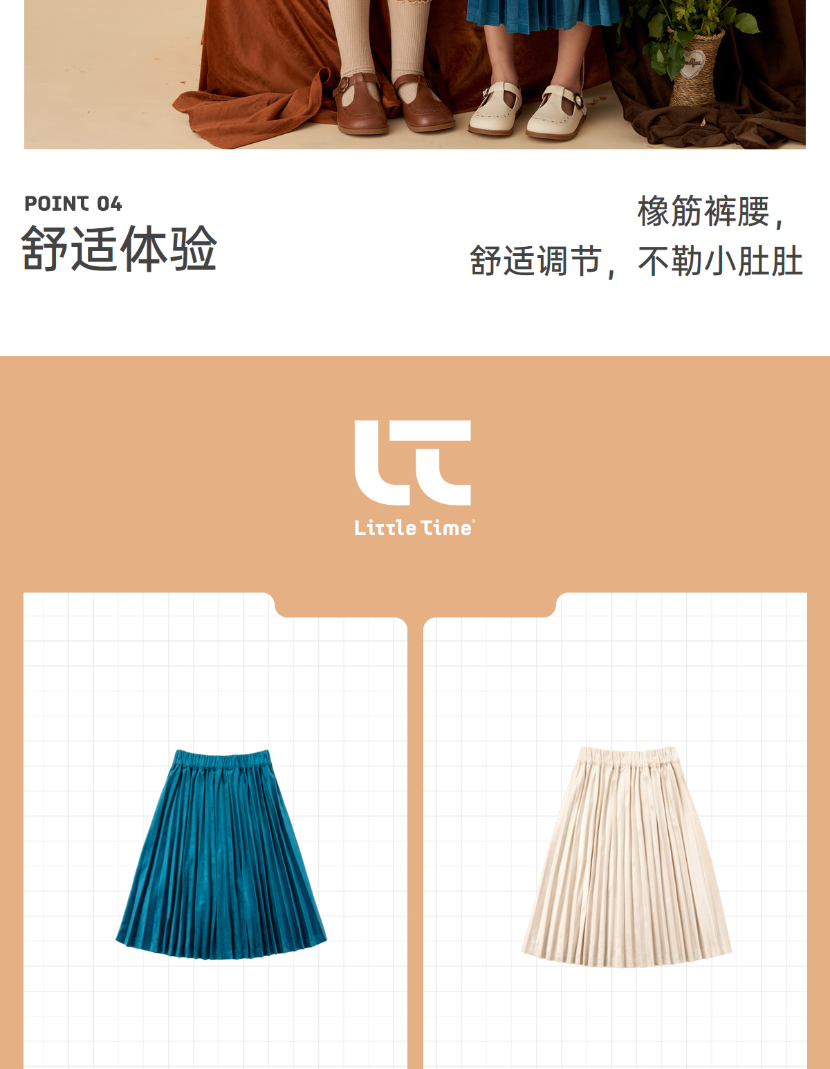 littletime女童半身百褶裙春秋2022新款洋气百搭长裙女孩外穿裙子