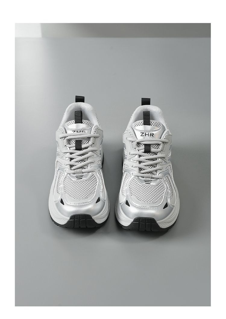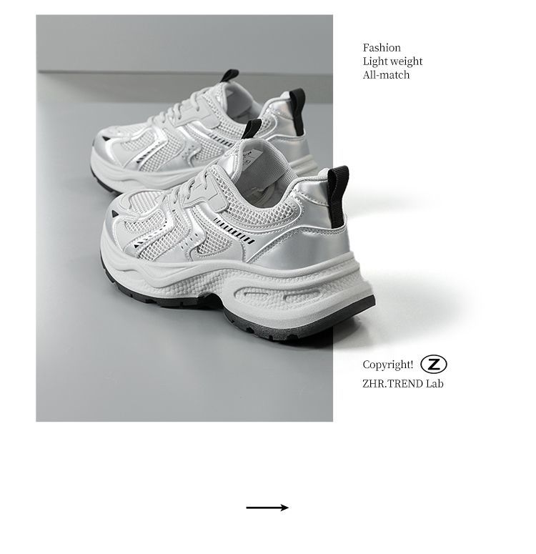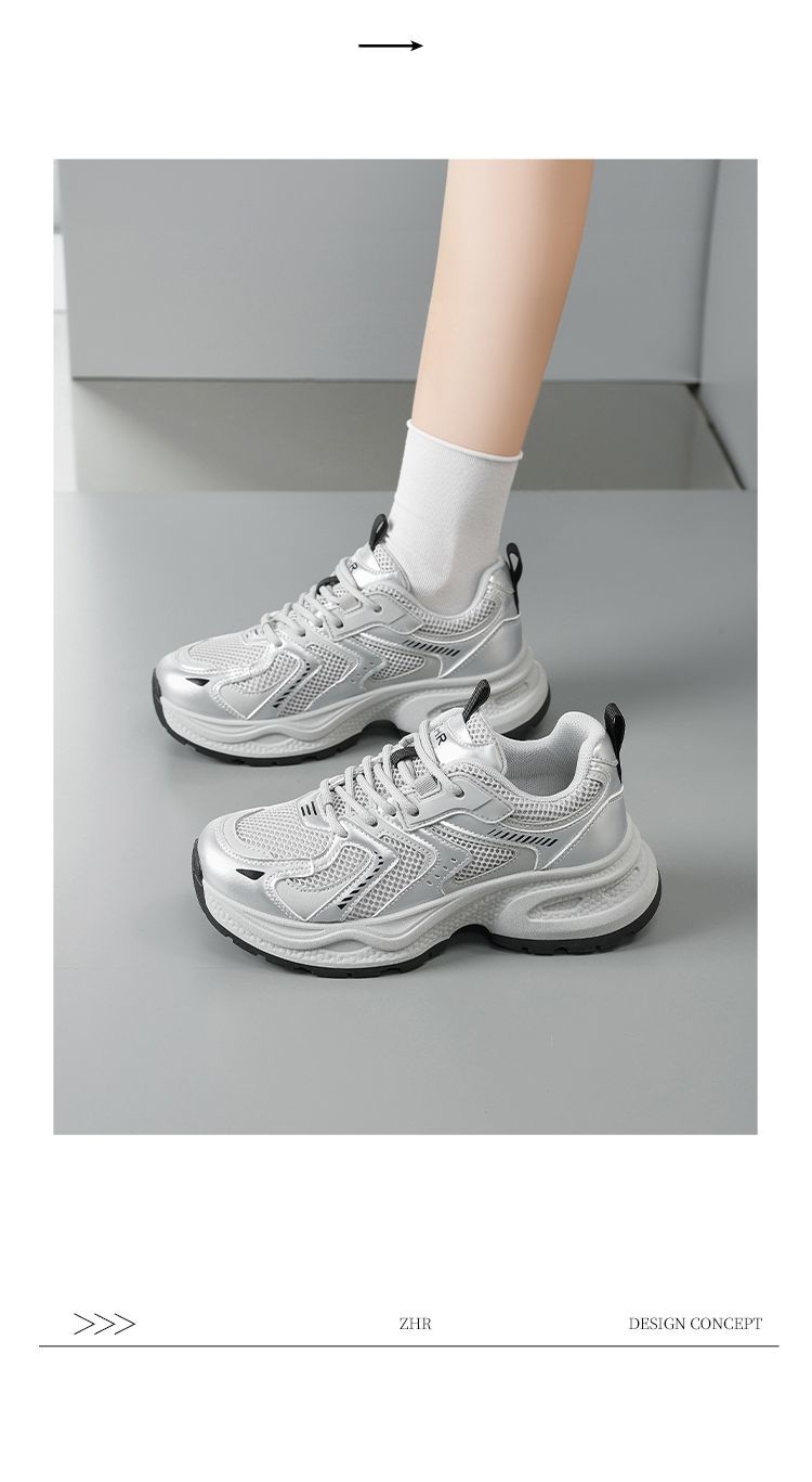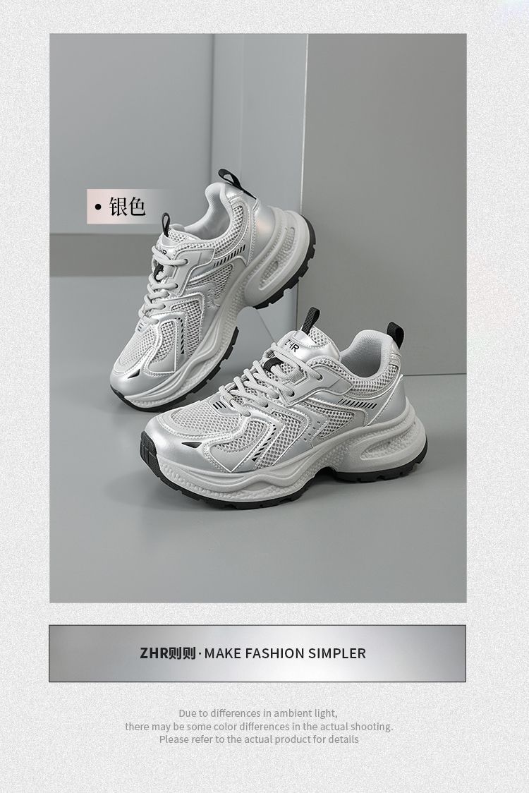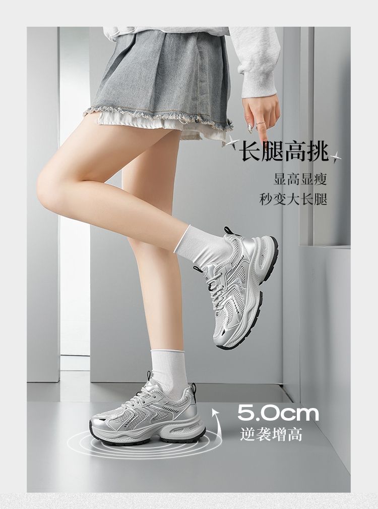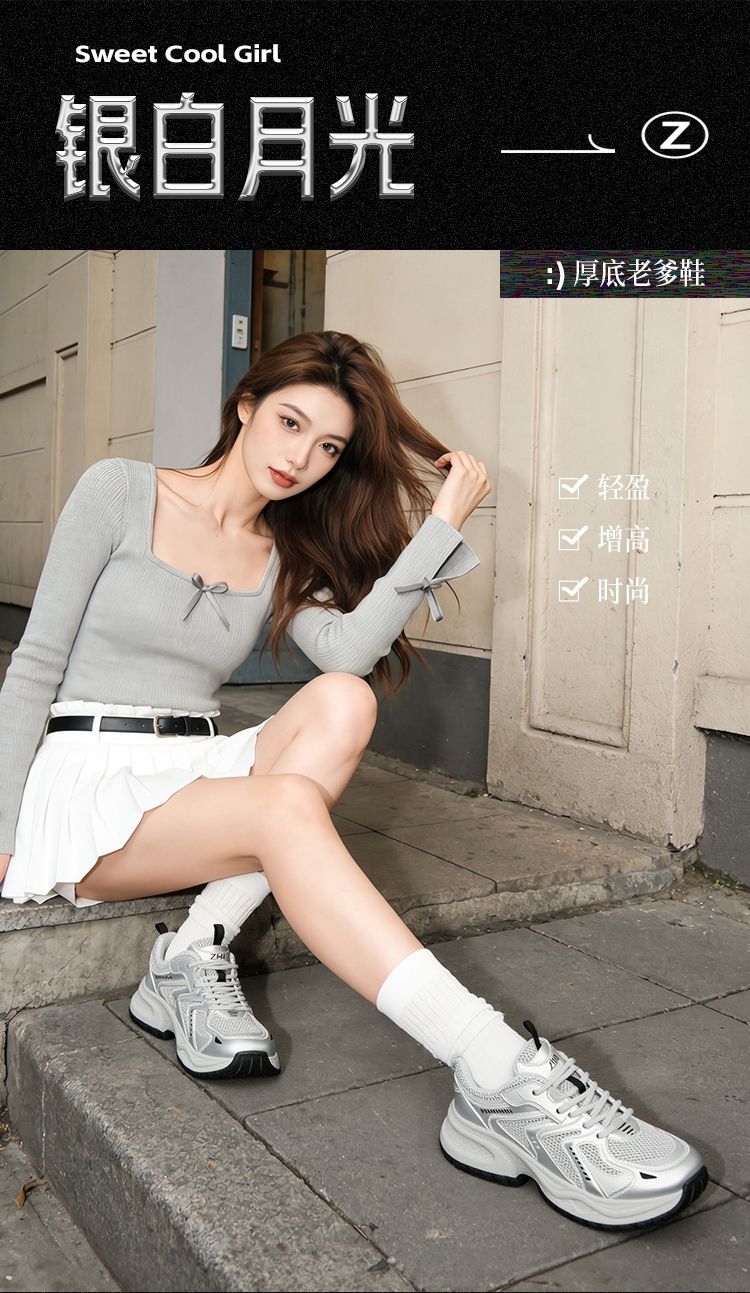 ZHR厚底增高【5cm】银色老爹鞋2026春季新款小个子轻便休闲鞋女鞋