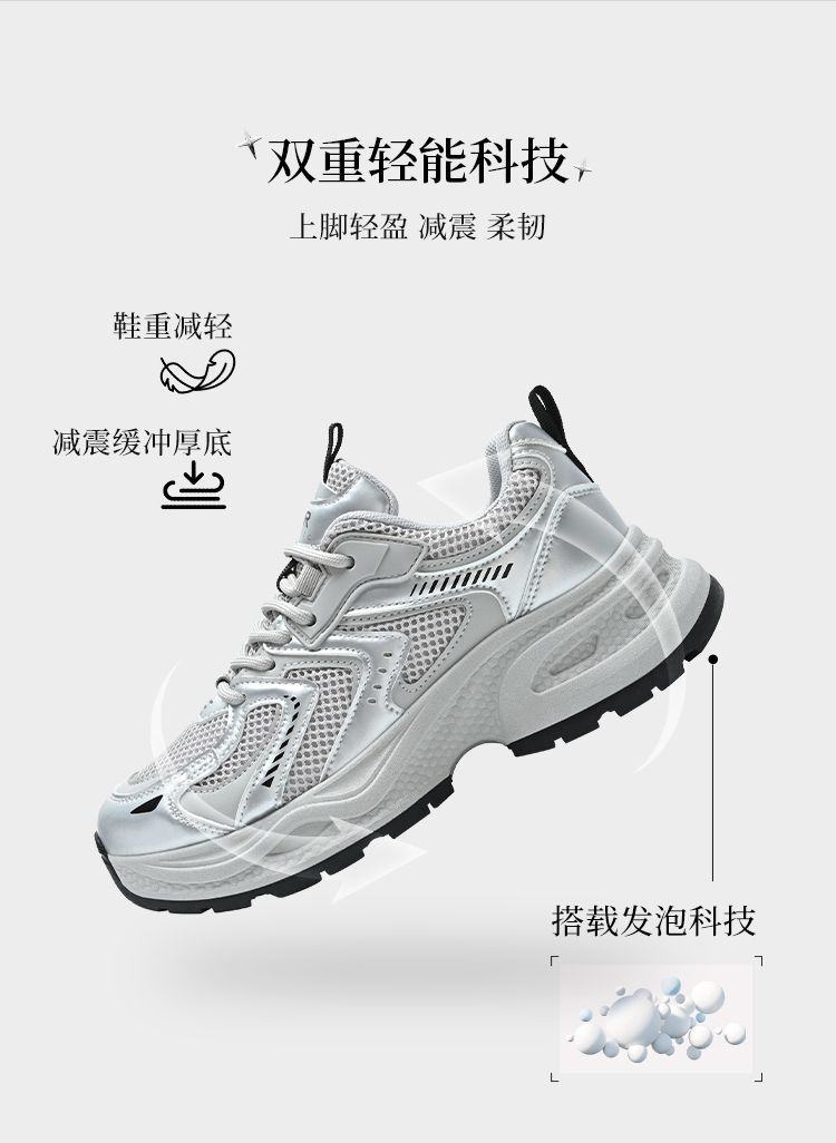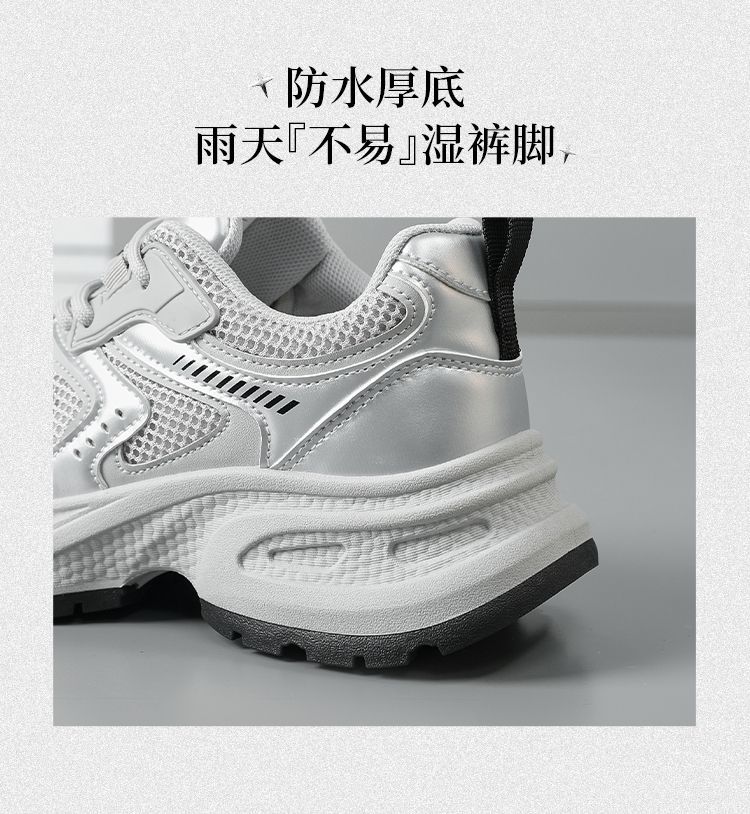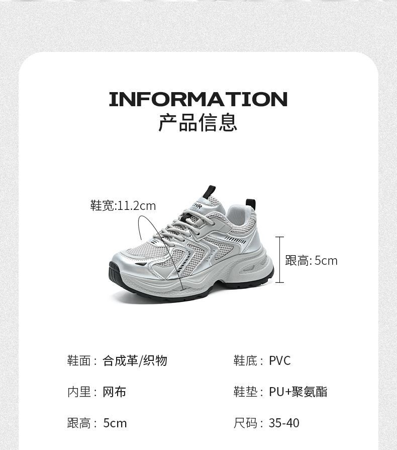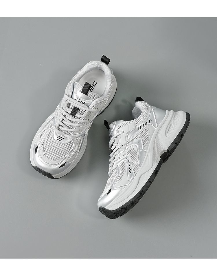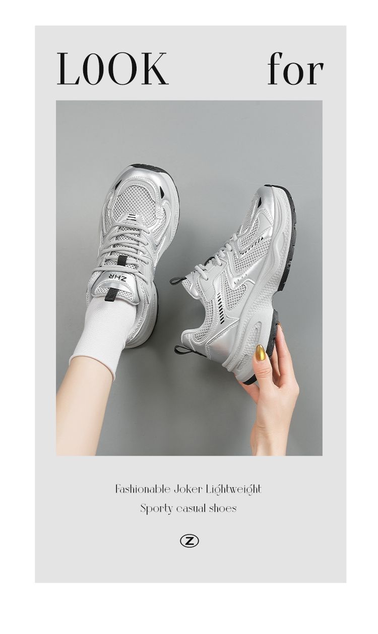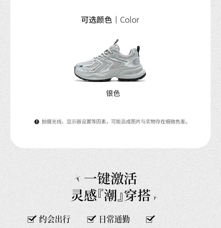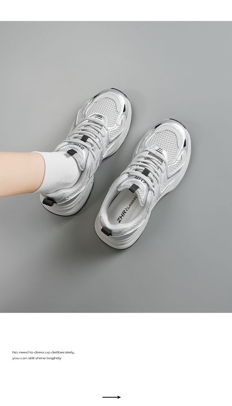 ZHR厚底增高【5cm】银色老爹鞋2026春季新款小个子轻便休闲鞋女鞋