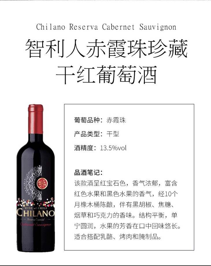 智利人赤霞珠珍藏干红葡萄酒