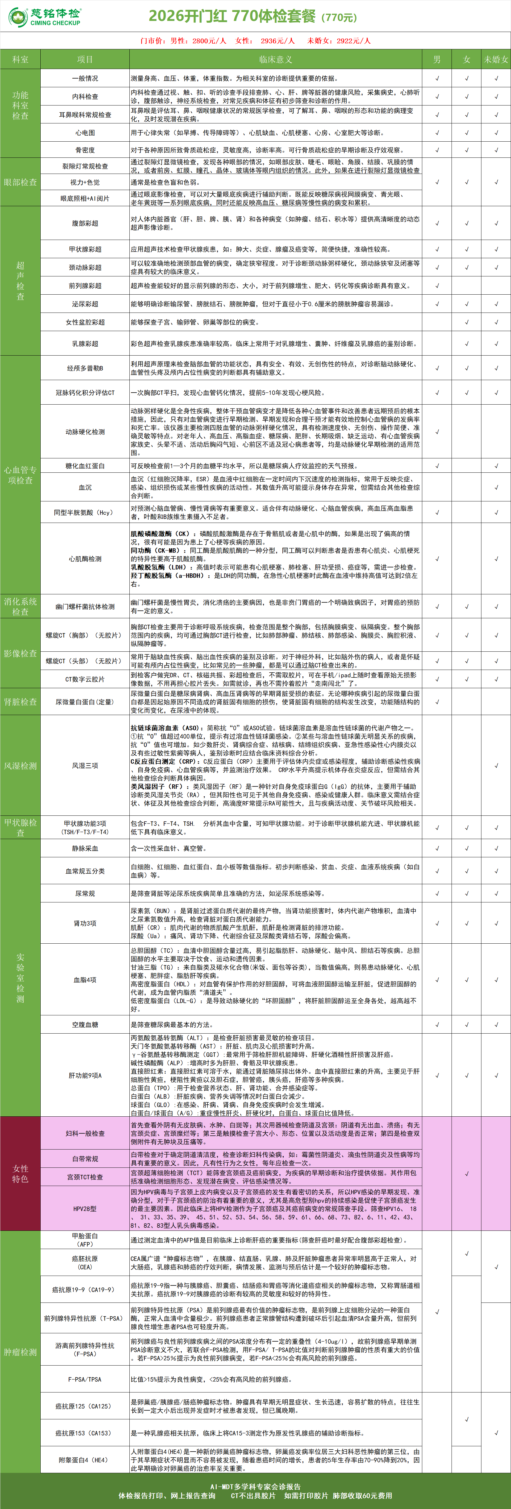 慈铭体检2026开门红770体检套餐