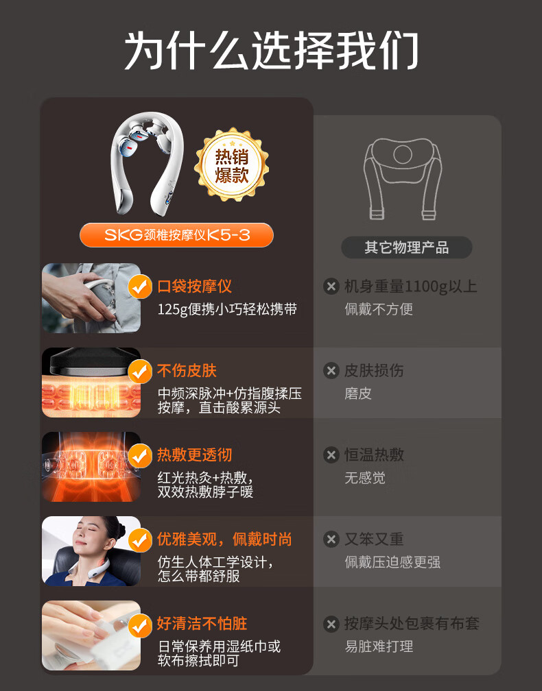 skg颈椎按摩器K5-3尊贵款【TOP榜+礼盒款】肩颈颈部脖子口袋按摩仪红光热敷 送男女友生日母亲节礼物