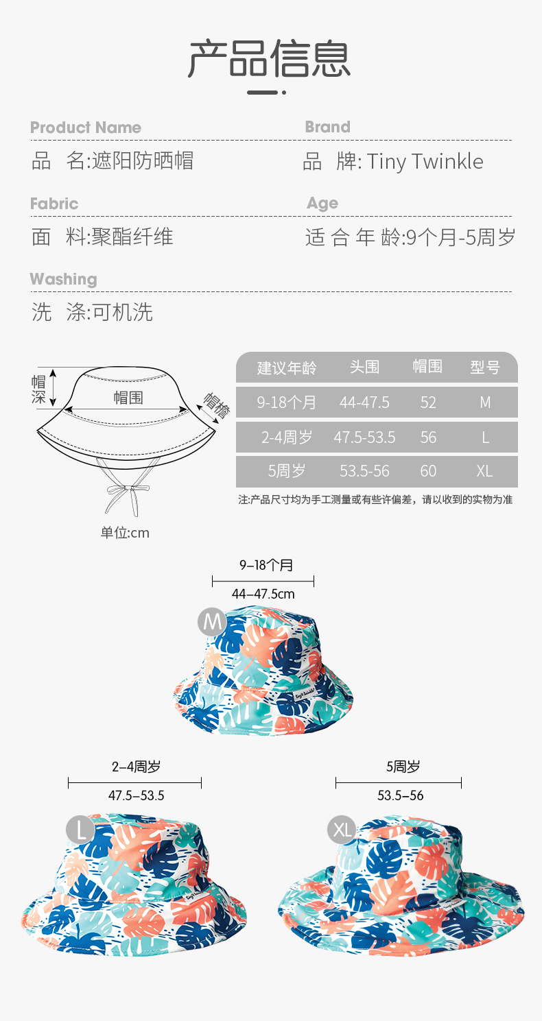 美国TinyTwinkle儿童防晒帽/遮阳帽/太阳帽轻薄透气