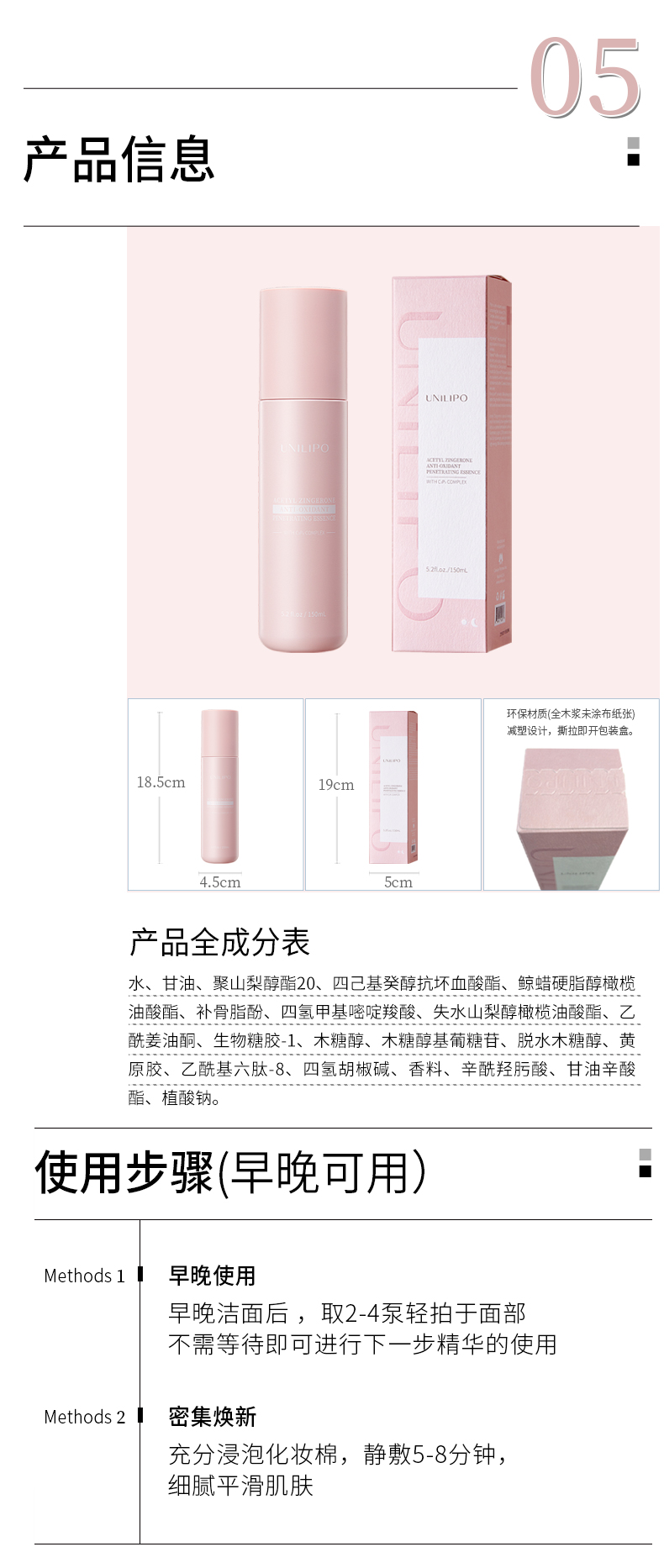 【前导促渗精华】UNILIPO研知有理乙酰姜油酮水光前导精华丨精华水丨爽肤水150ml