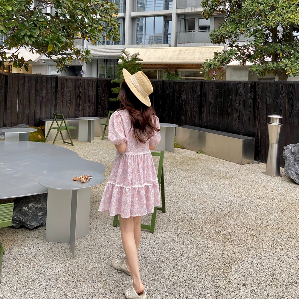 金蘑菇菇【夏至未至】立体感气质小花花v领连衣裙