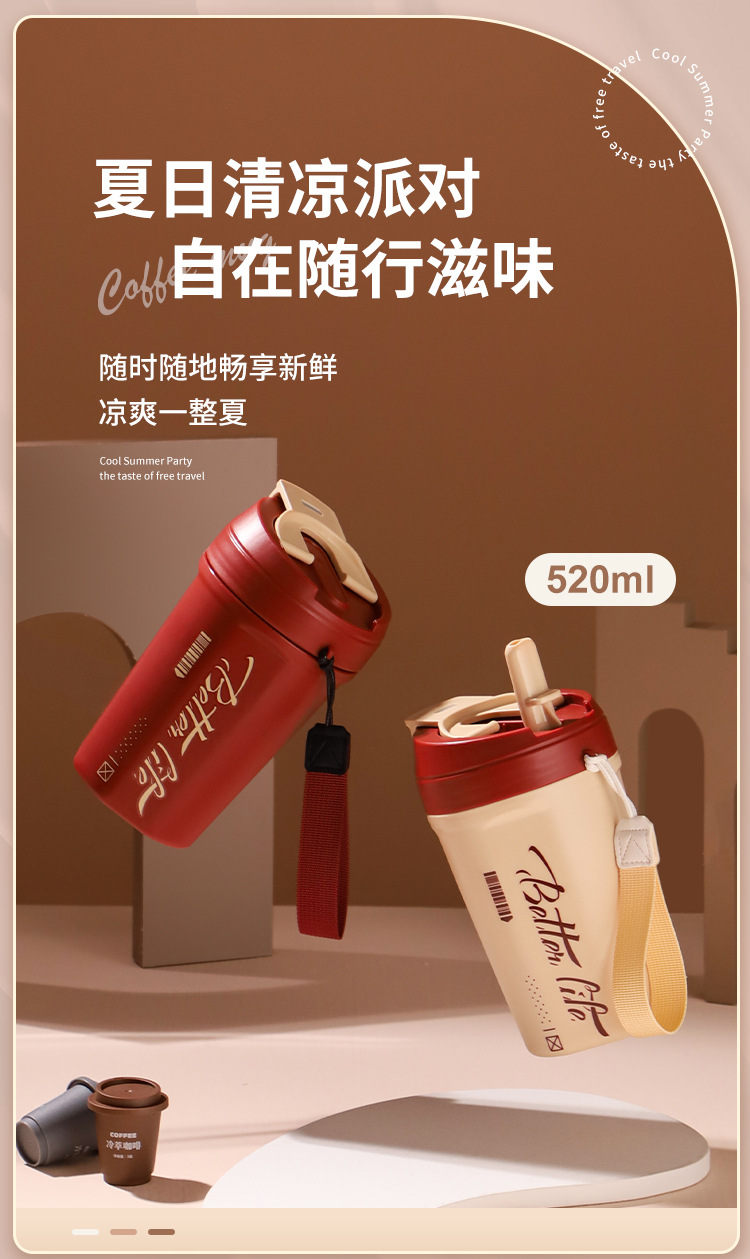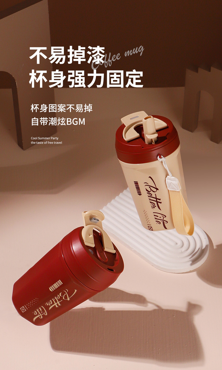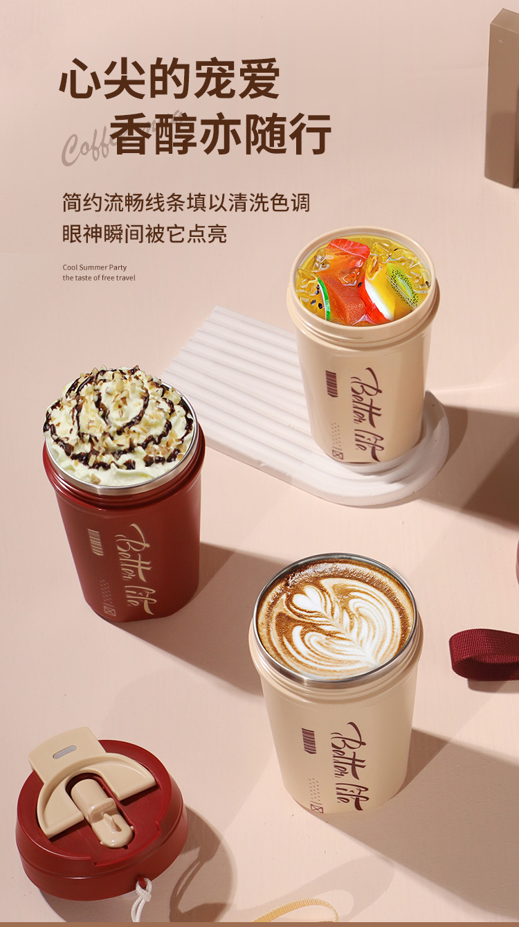 可口可乐咖啡杯保温杯不锈钢水杯男士高颜值女士便携随行杯子