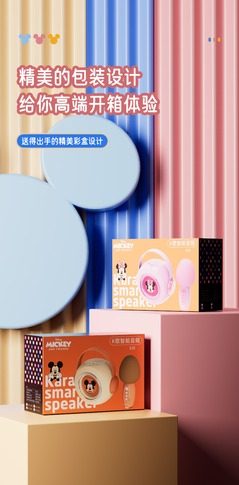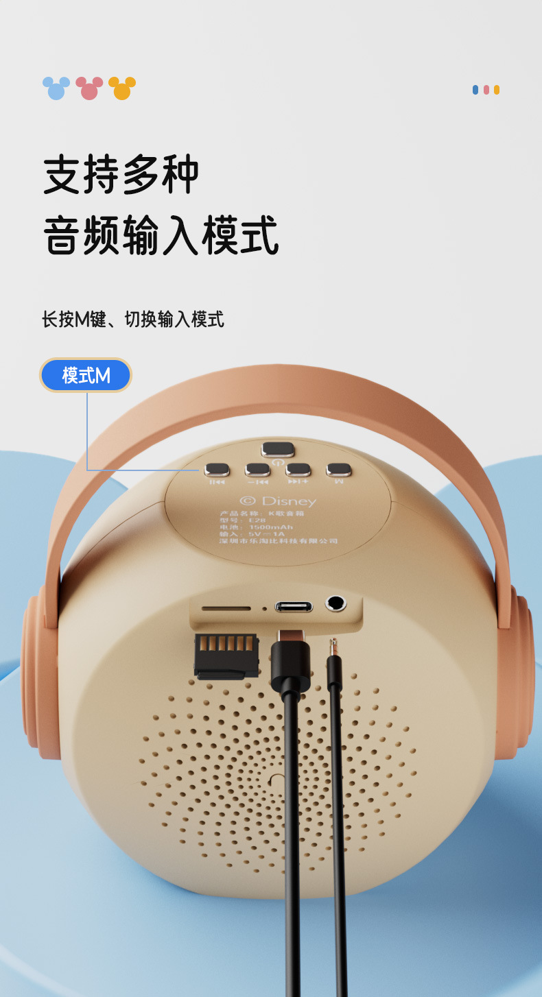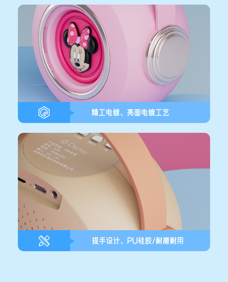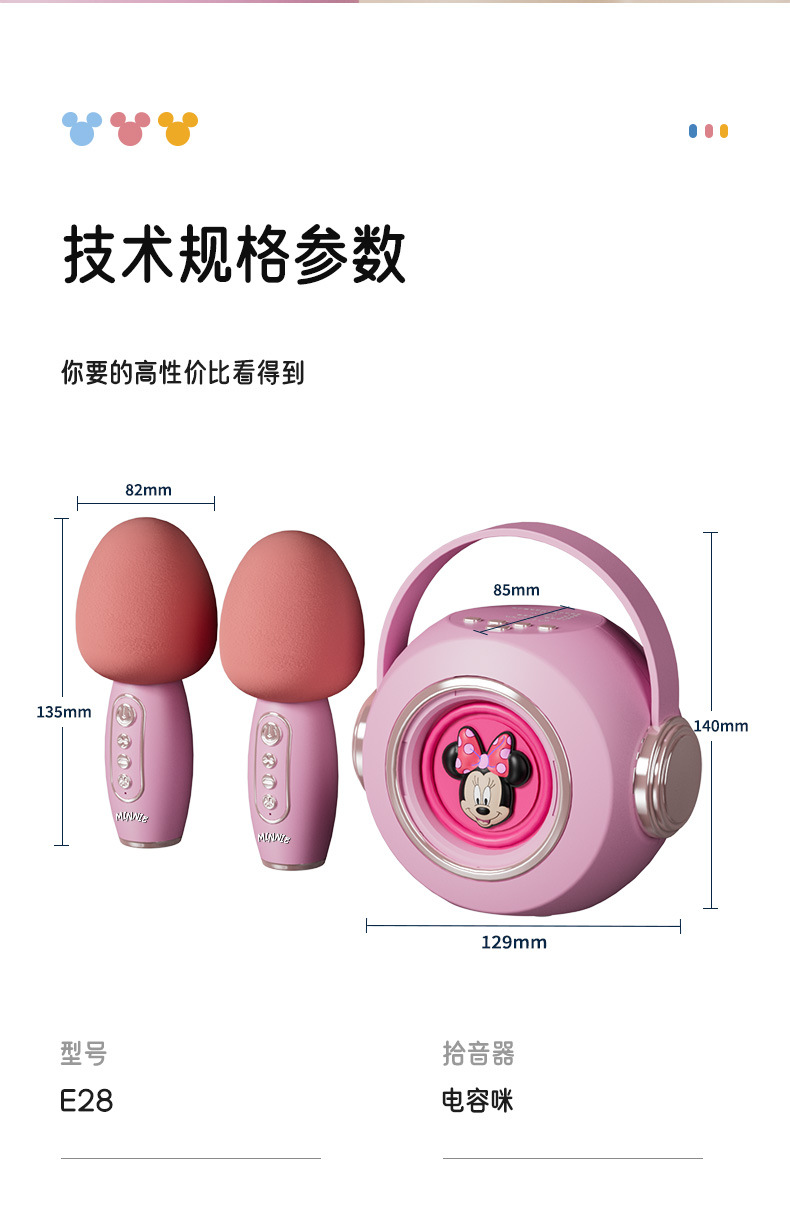 迪士尼E28无线话筒K歌蓝牙音响一体麦克风家用唱歌KTV音箱便携式