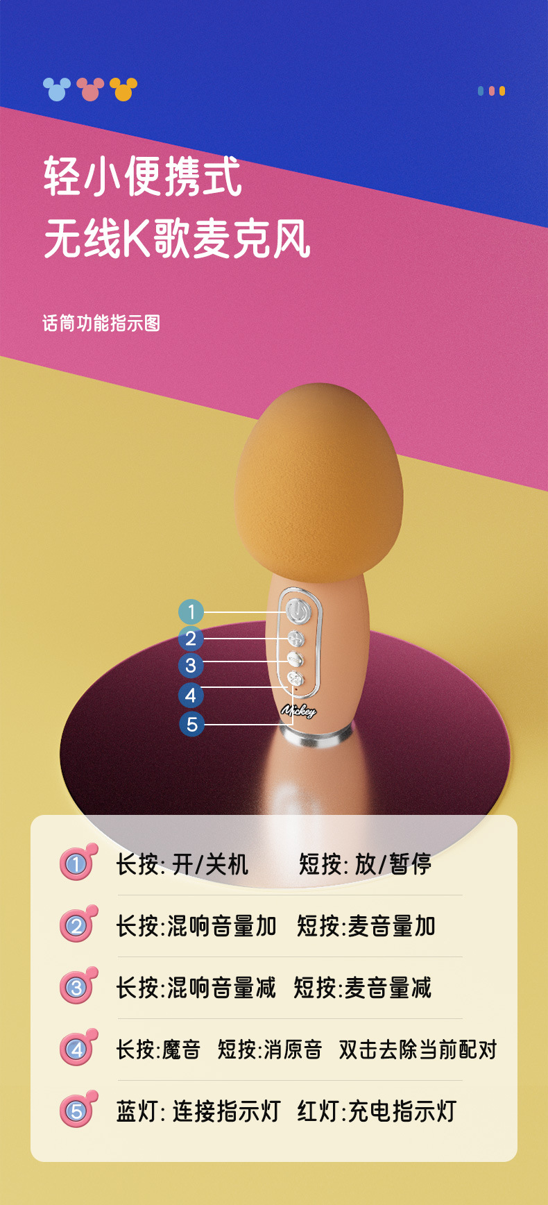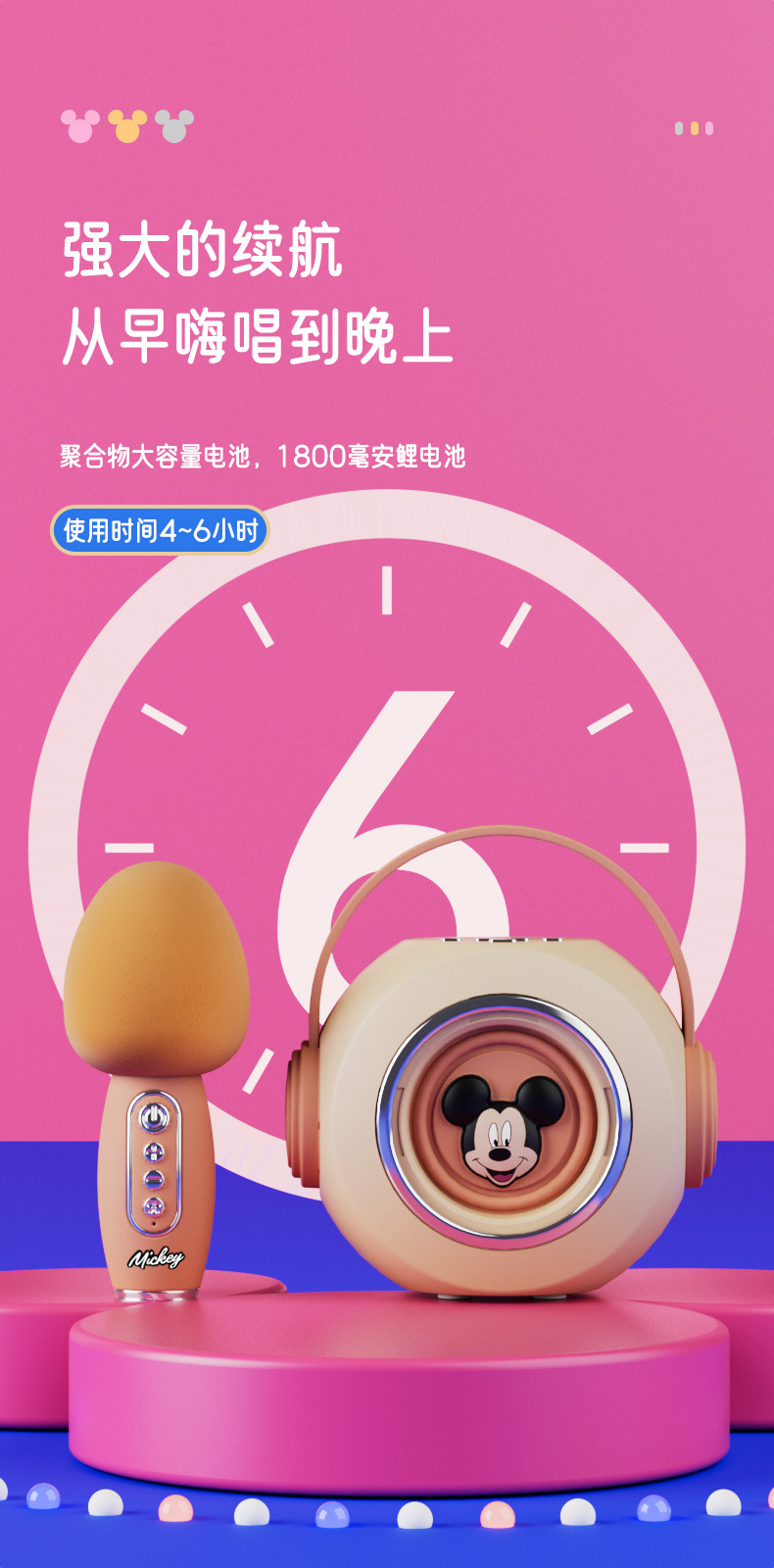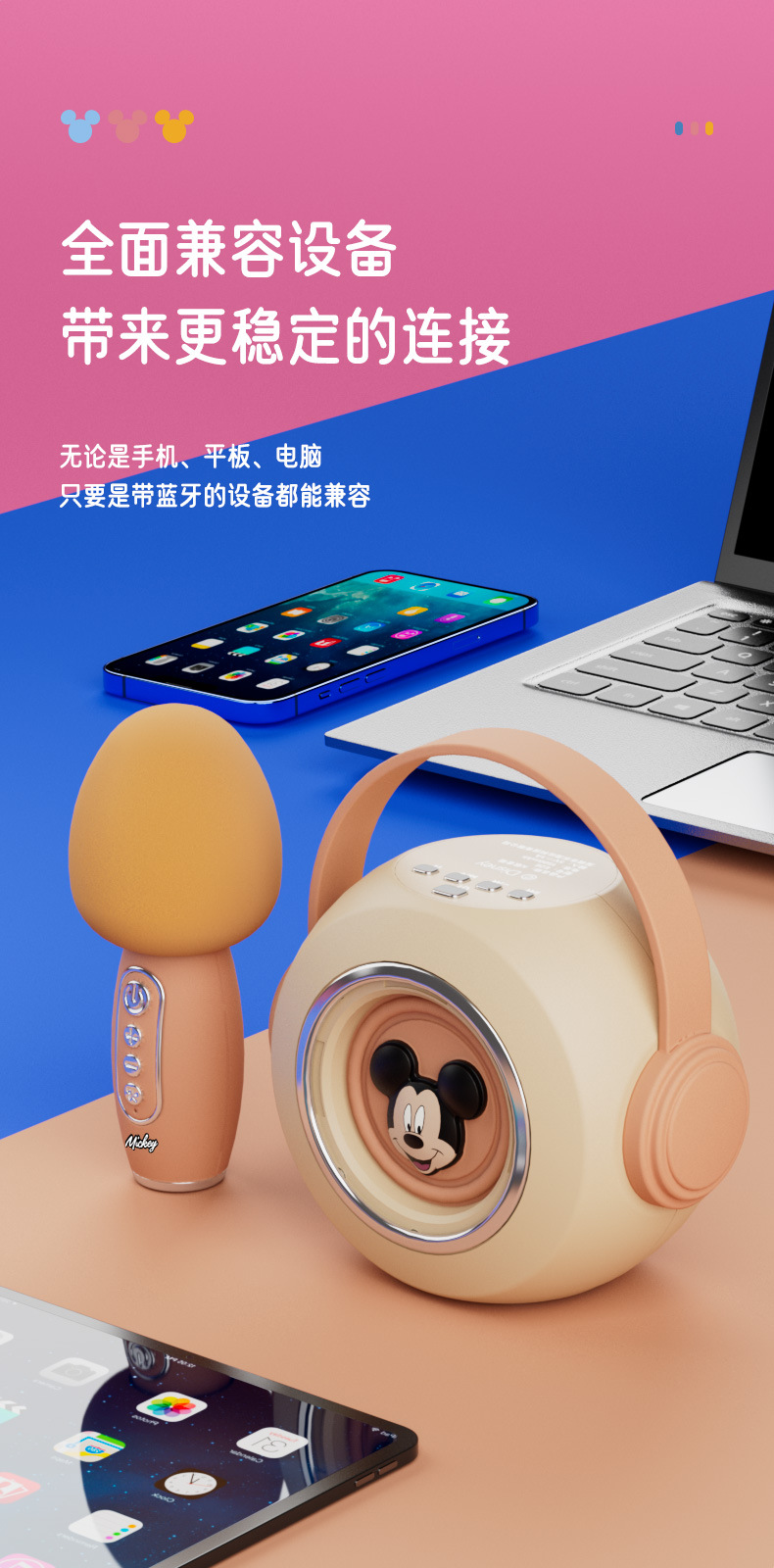 迪士尼E28无线话筒K歌蓝牙音响一体麦克风家用唱歌KTV音箱便携式