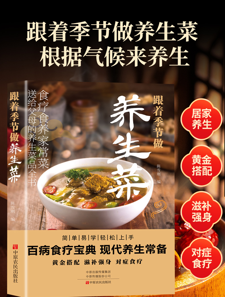 本书为生活类图书。《跟着季节做养生菜》为生活类图书,属于“季节厨房”系列。本书以四季养生为线索,以菜谱的形式,介绍了适合各季节的汤品,春季去疲困,夏季去暑热,秋季去烦躁,冬季去严寒。本书图片精美,步骤简洁,实用性强。作者陈雪刚,为中国烹饪大师,著述颇多,保障了图书内容质量。以春、夏、秋、冬四季划分章节,依据24节气介绍应季食材,并对各节气和食材的特性分别进行介绍,帮助调养生息,再搭配以烹饪大厨亲授的美味菜肴,健康、美味,自然就来!而本书更是将传统纸质图书与手机、IPAD等新型媒介关联起来,可以扫描随菜二维码,打开视频,在家就能发掘时令鲜食的丰富好滋味!