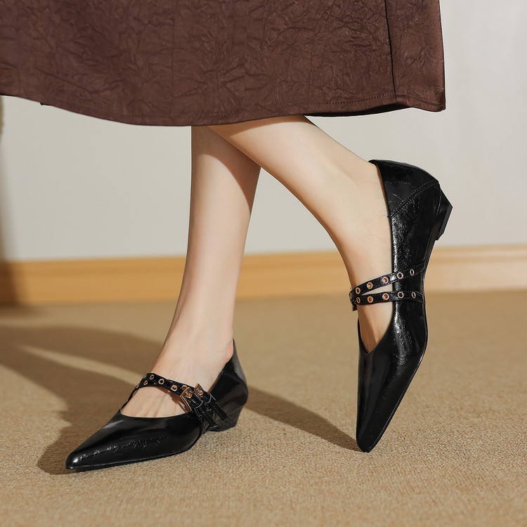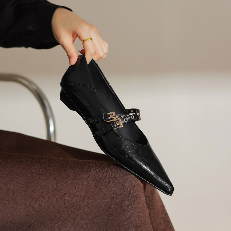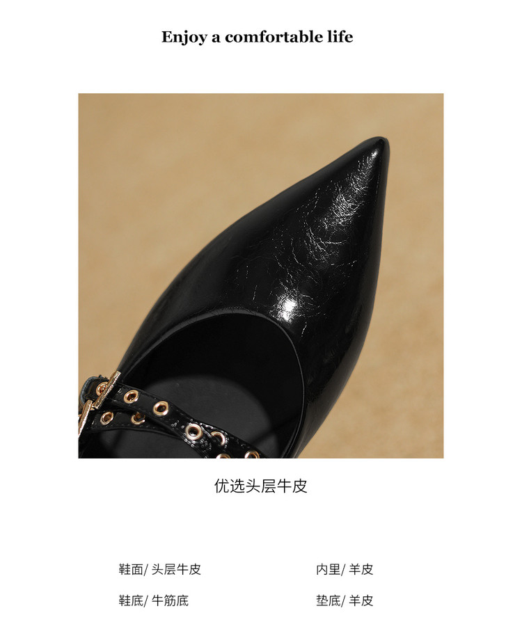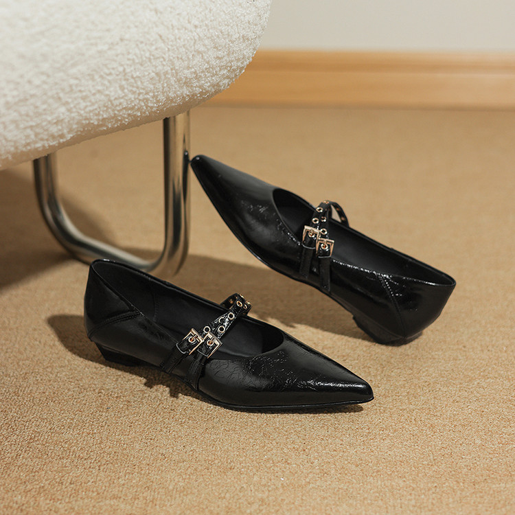 【预售5天】春秋季新款黑色时尚法式小坡跟单鞋气质百搭一字带浅口玛丽珍鞋ZF&25204