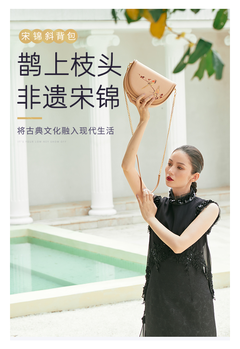 SAINTJOY/上久楷 宋锦斜背包 鹊上枝头 BWS23B0902