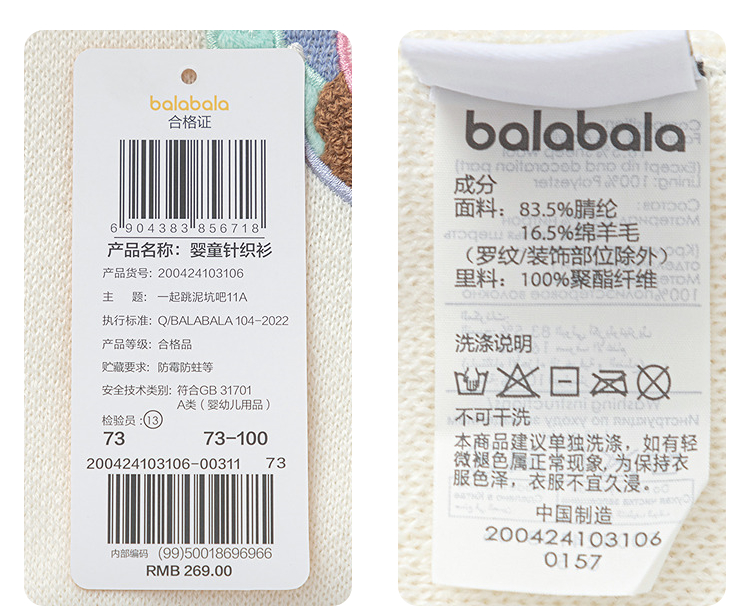 【小猪佩奇IP】巴拉巴拉婴儿毛衣儿童冬季线衫男童套头毛衫萌趣