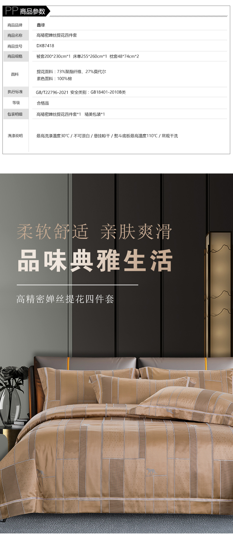 鑫缘 高精密婵丝提花四件套 DXB7418