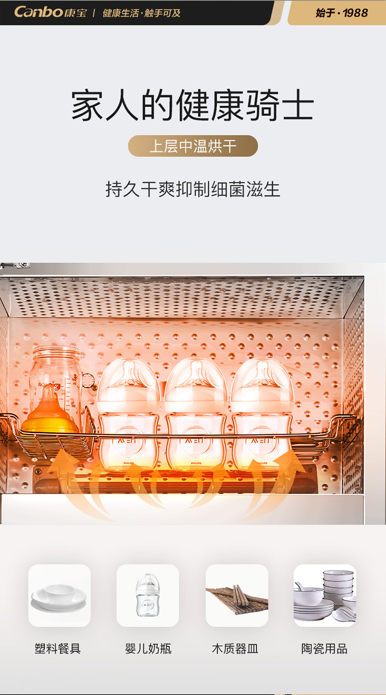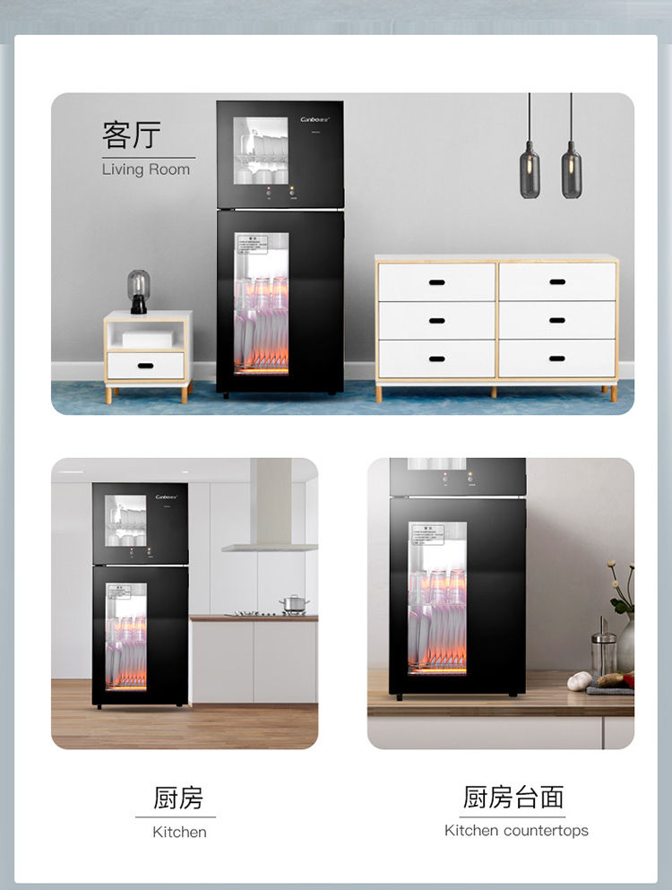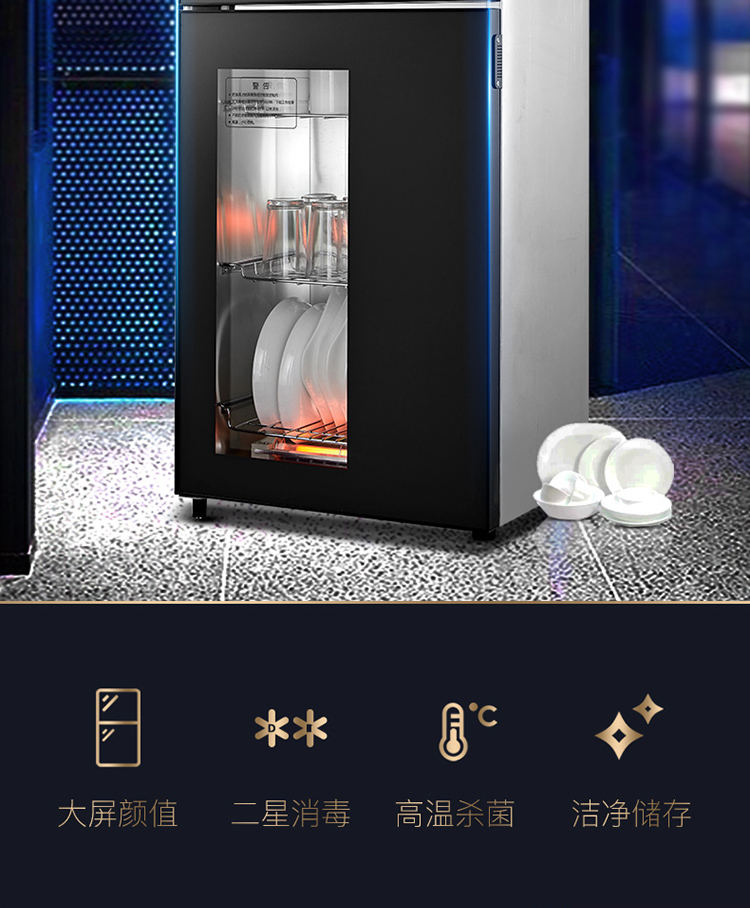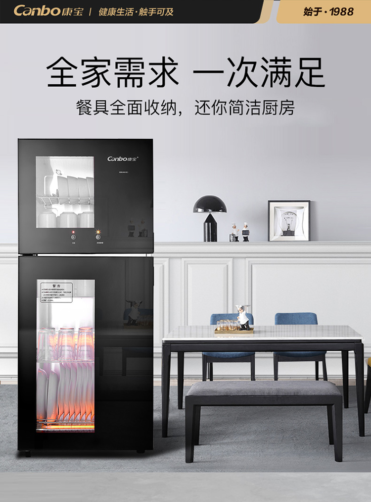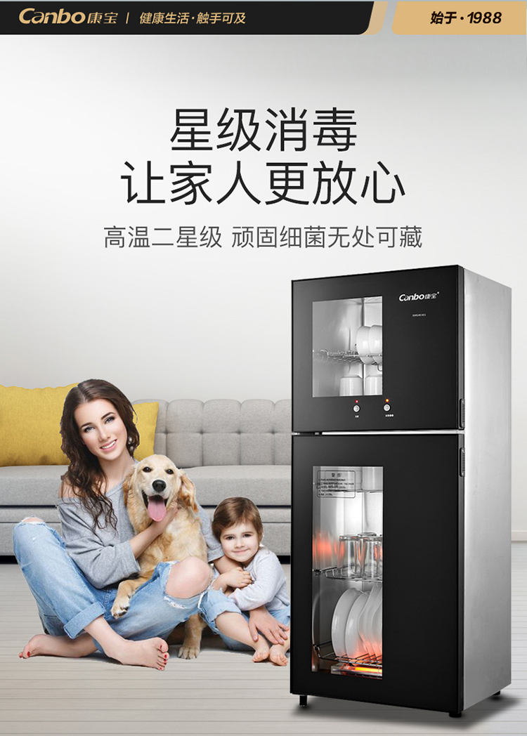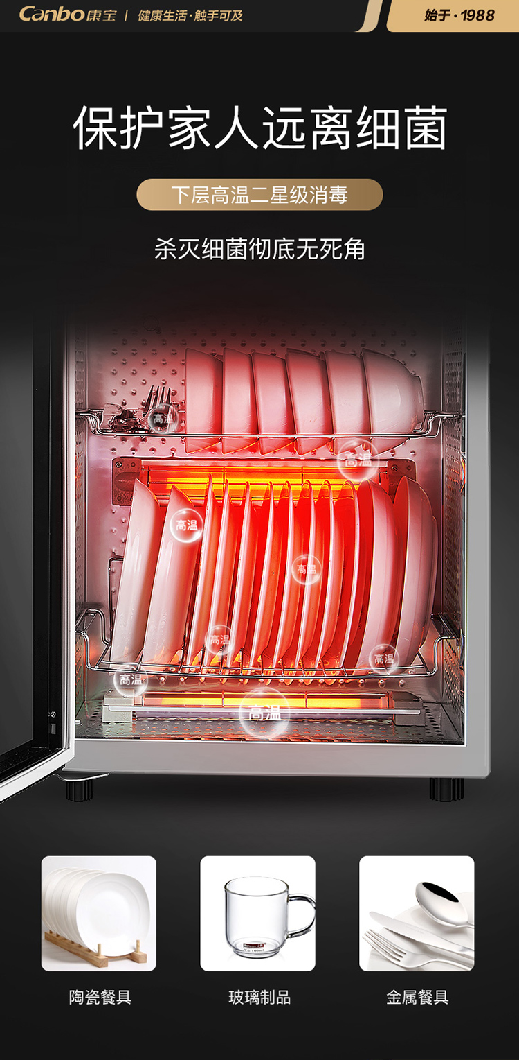 康宝(Canbo)消毒柜 家用 立式 小型消毒柜 二星级高温 厨房碗筷餐具消毒碗柜 双门台式XDR140-XC1