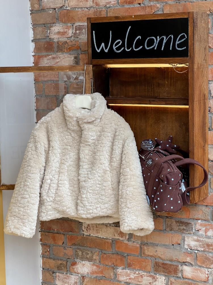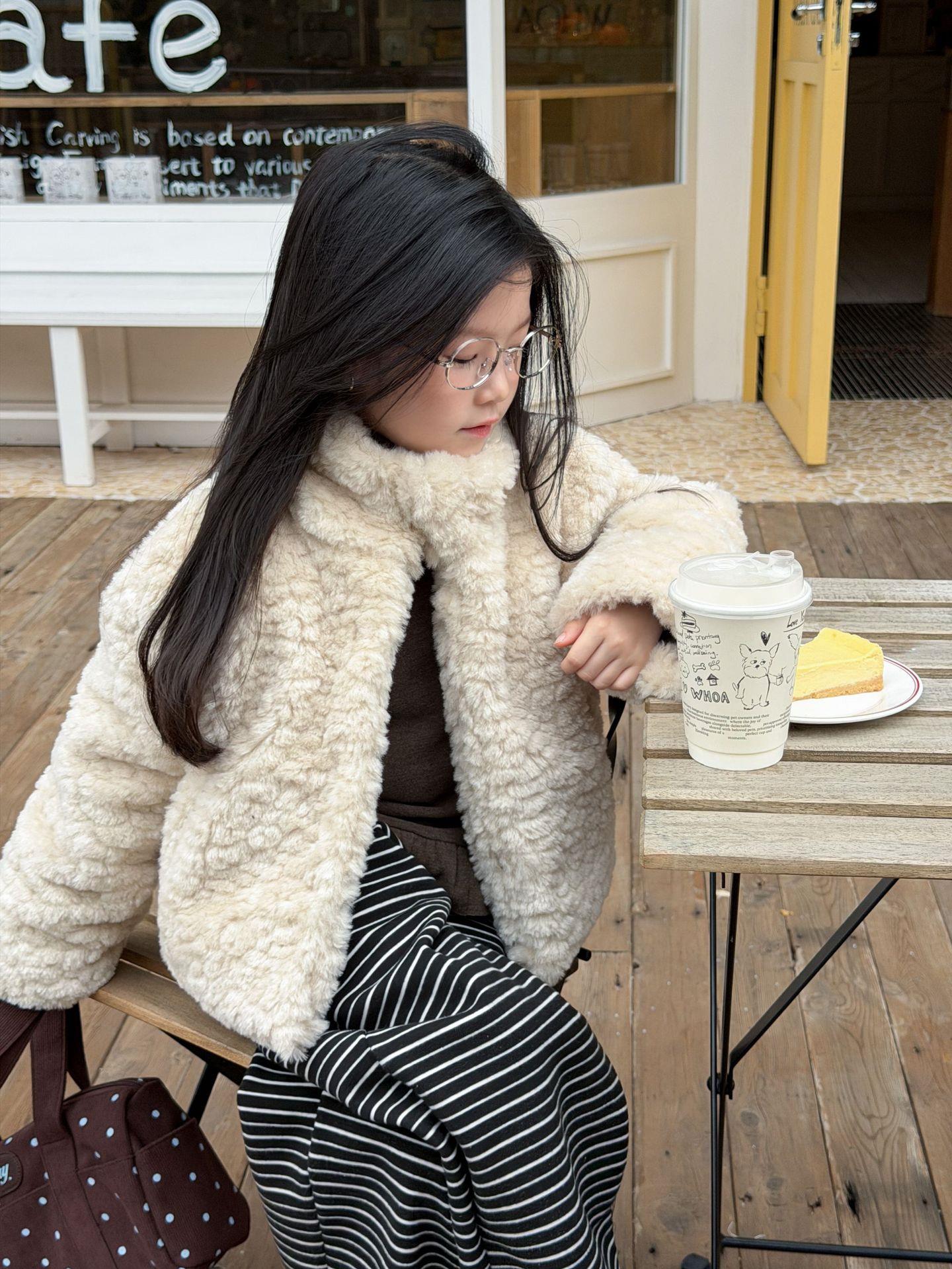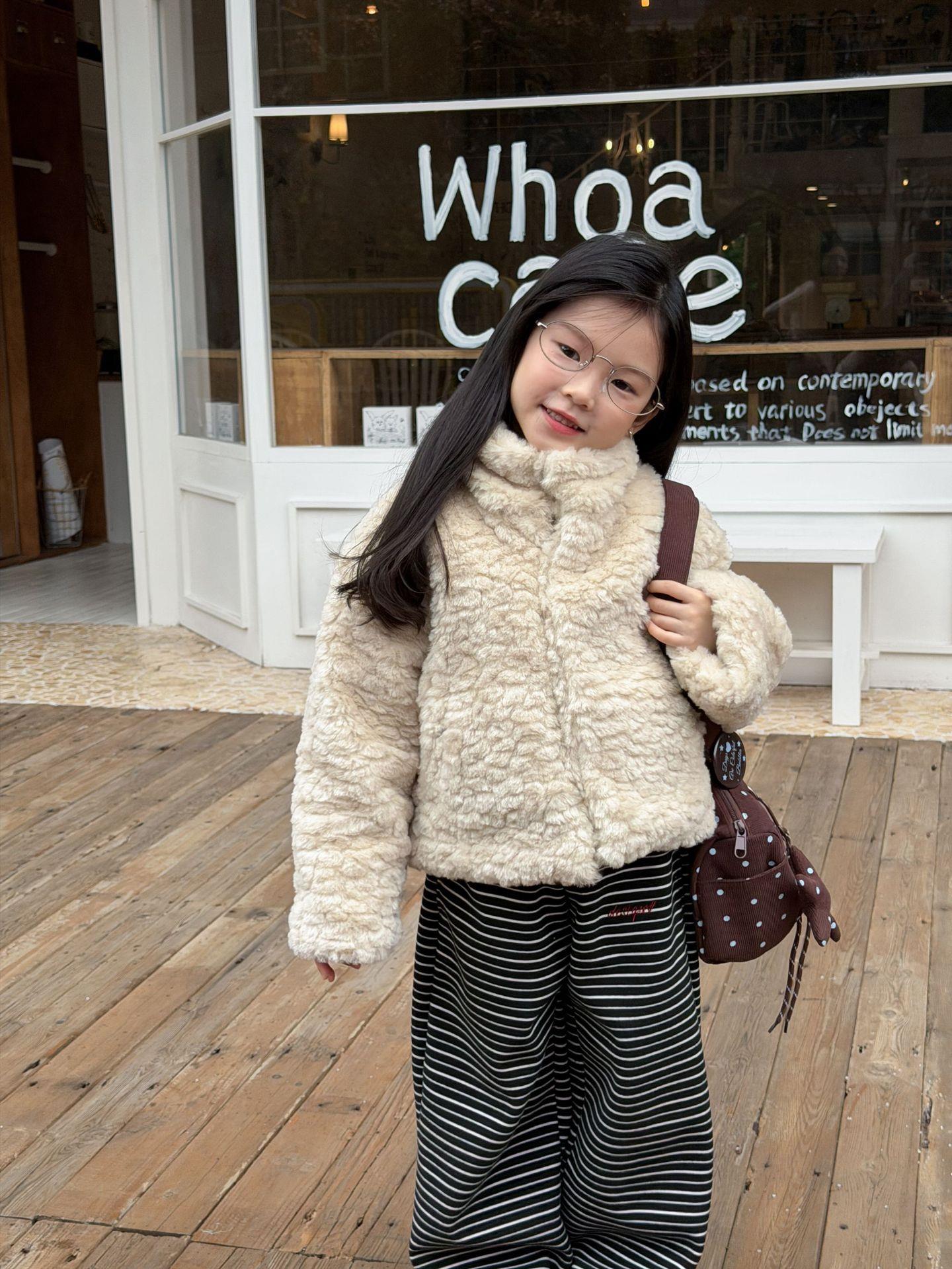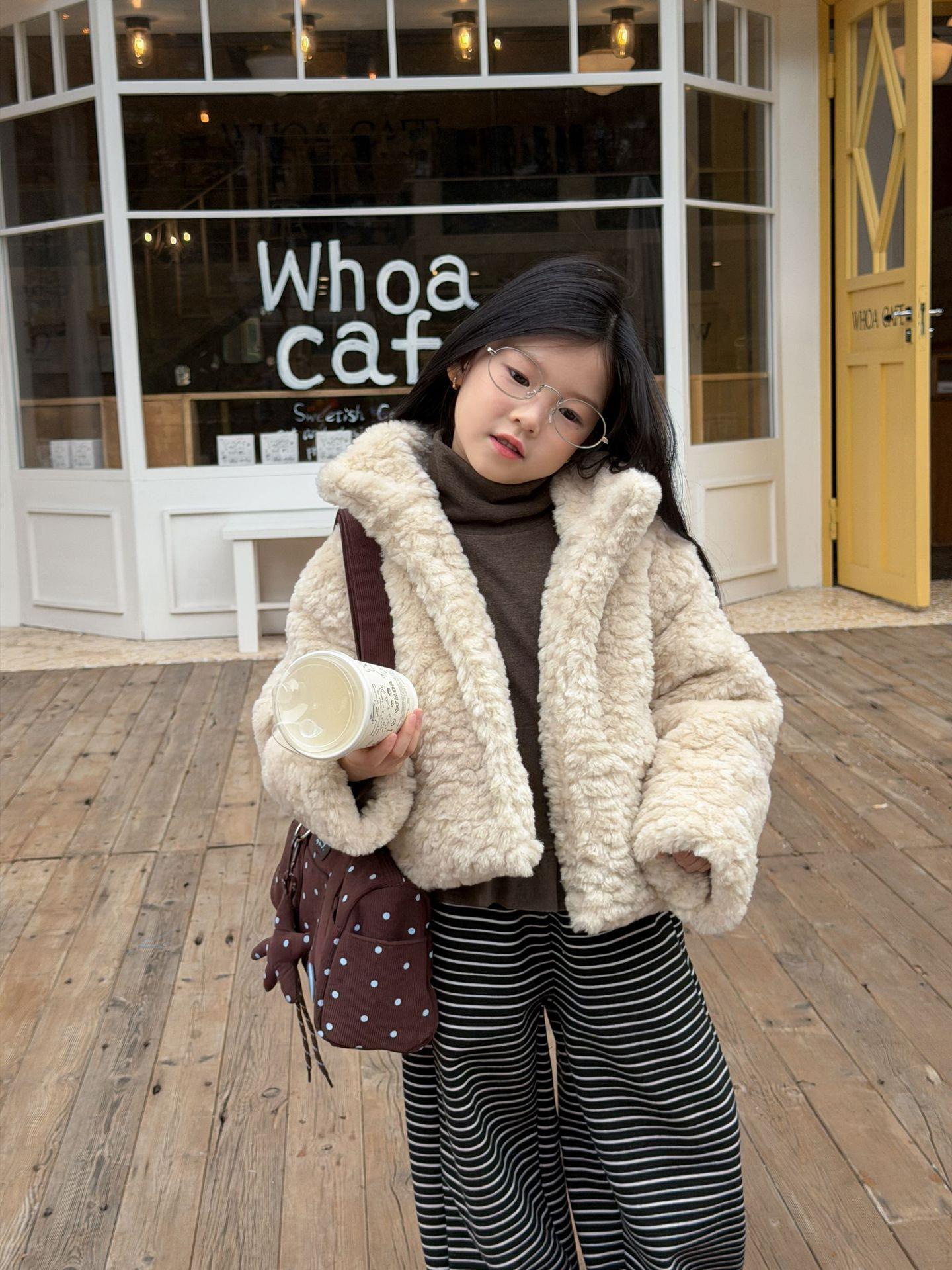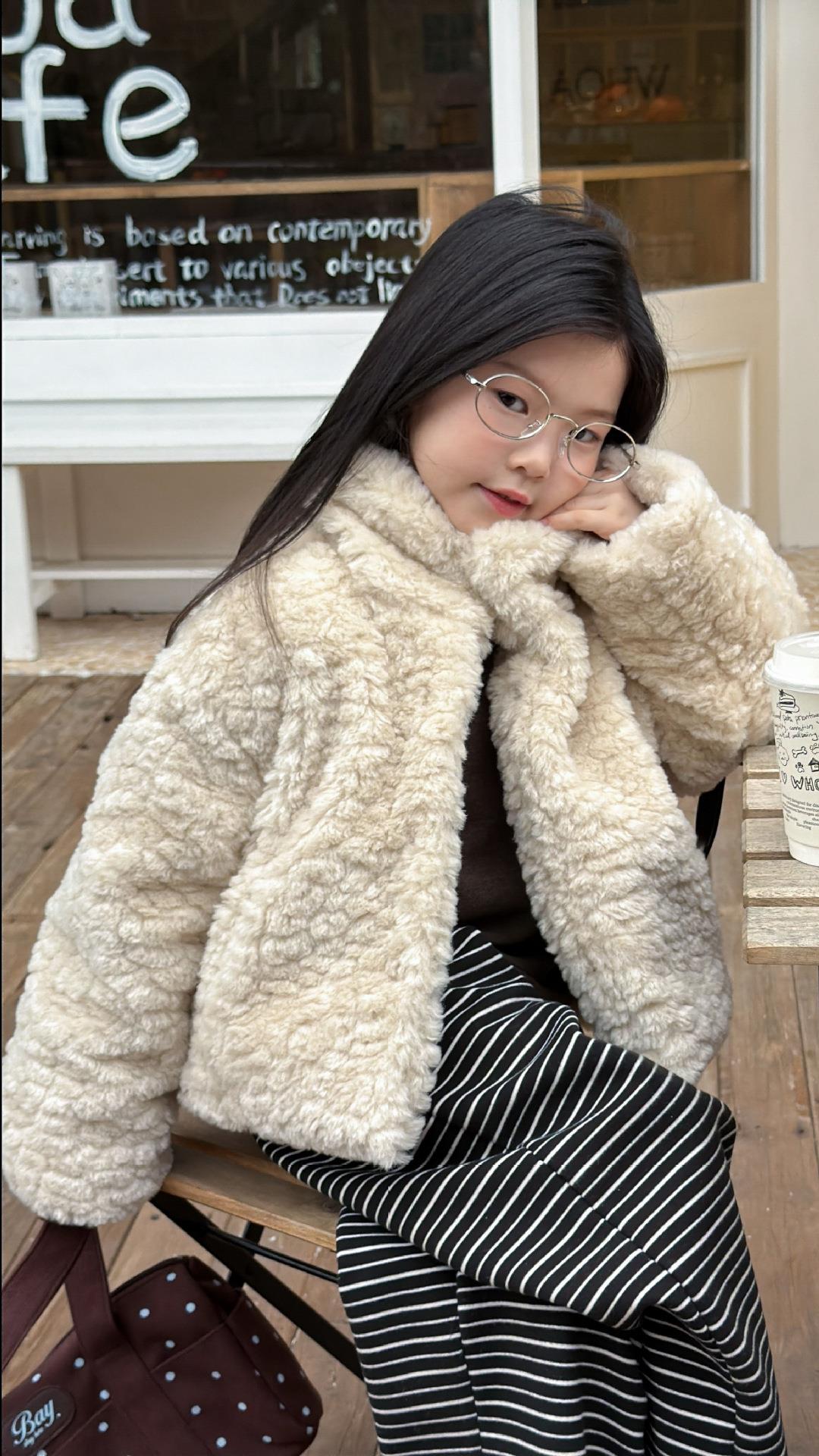 艾摩贝贝女童软萌小短款棉衣时髦保暖夹棉毛绒立领外套,冬日氛围感担当!