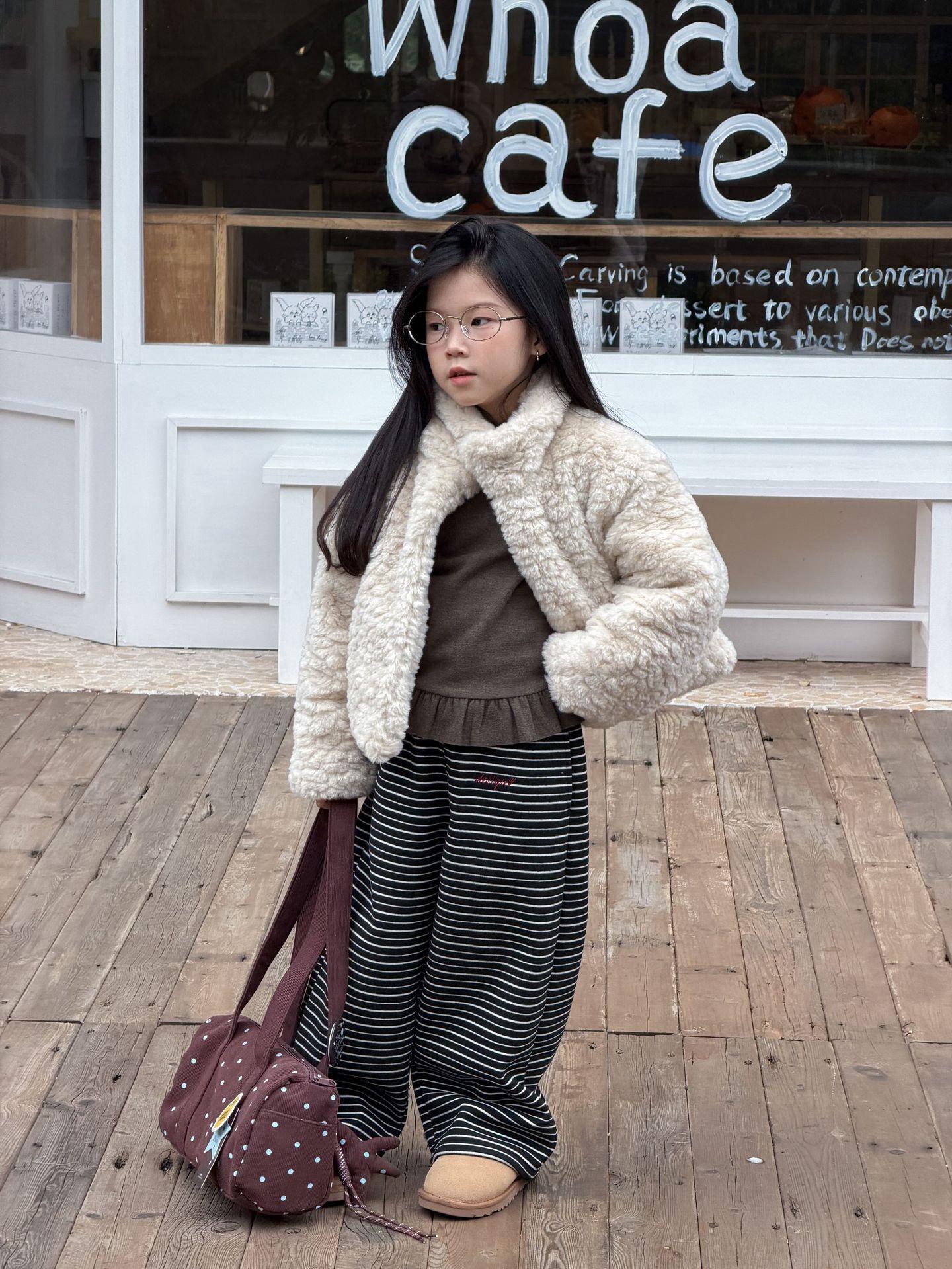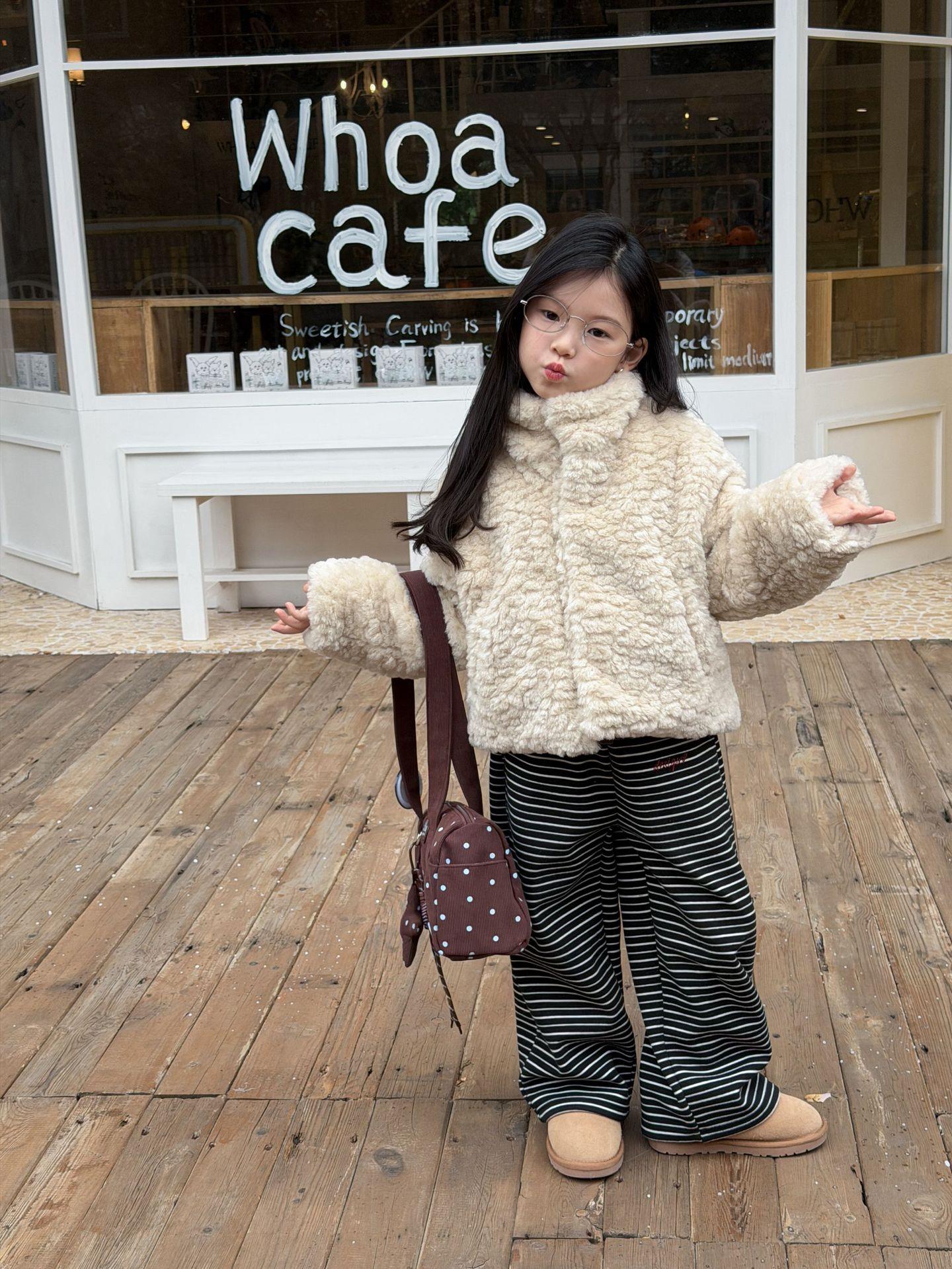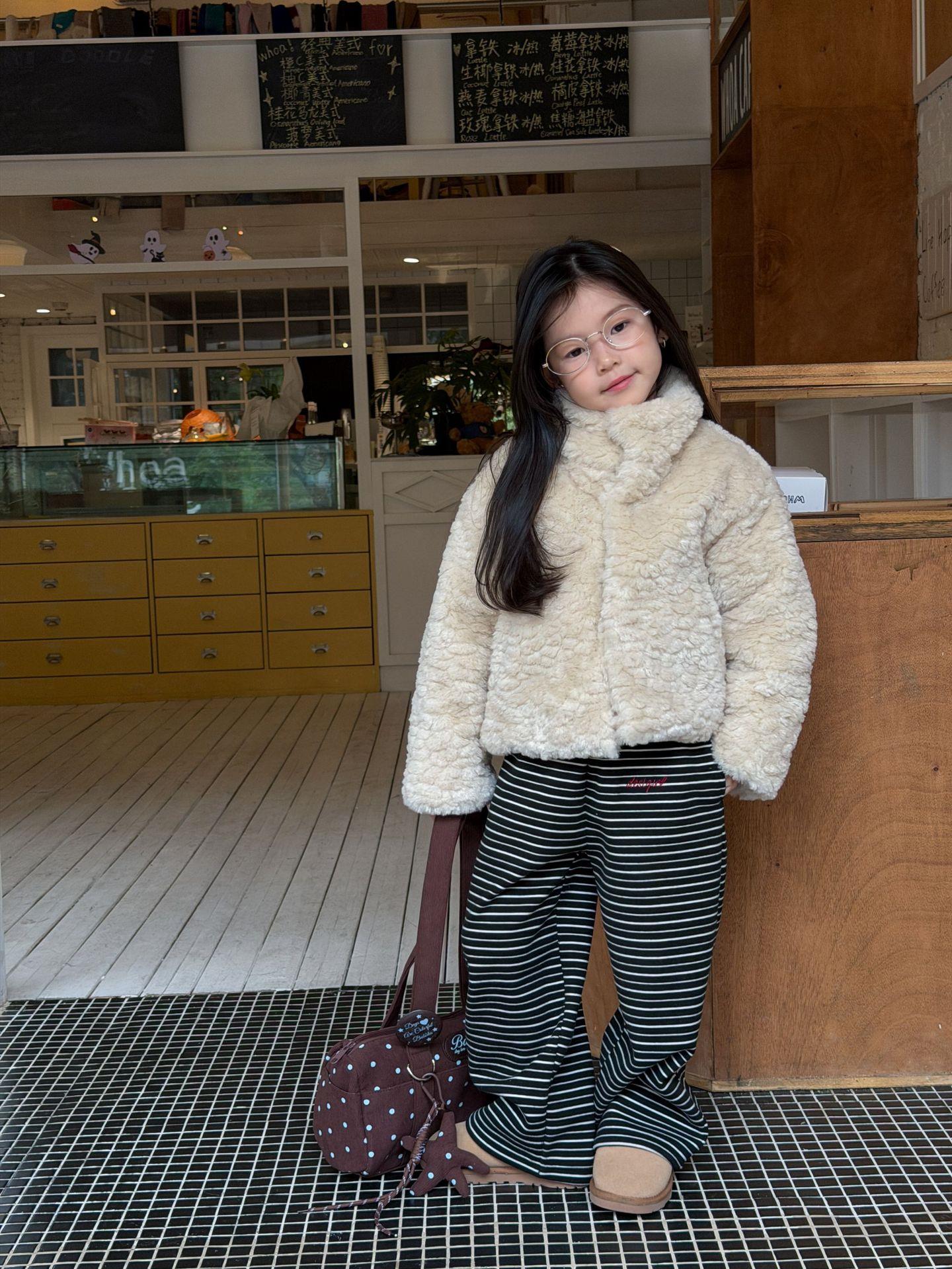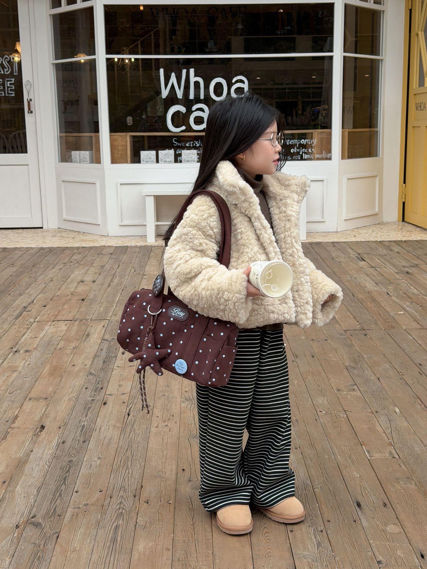 艾摩贝贝女童软萌小短款棉衣时髦保暖夹棉毛绒立领外套,冬日氛围感担当!