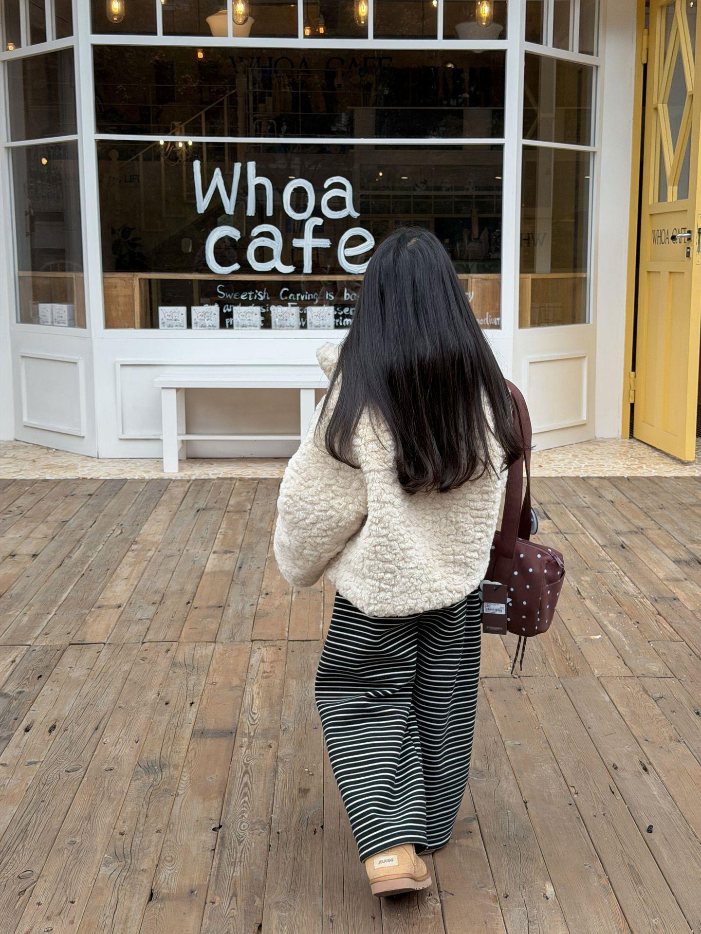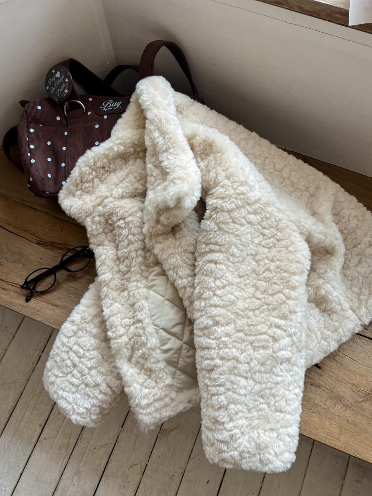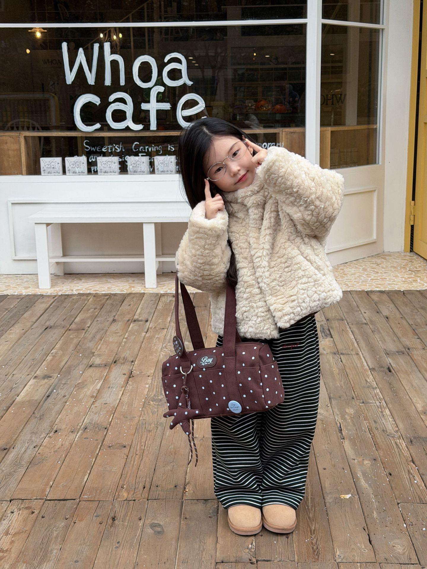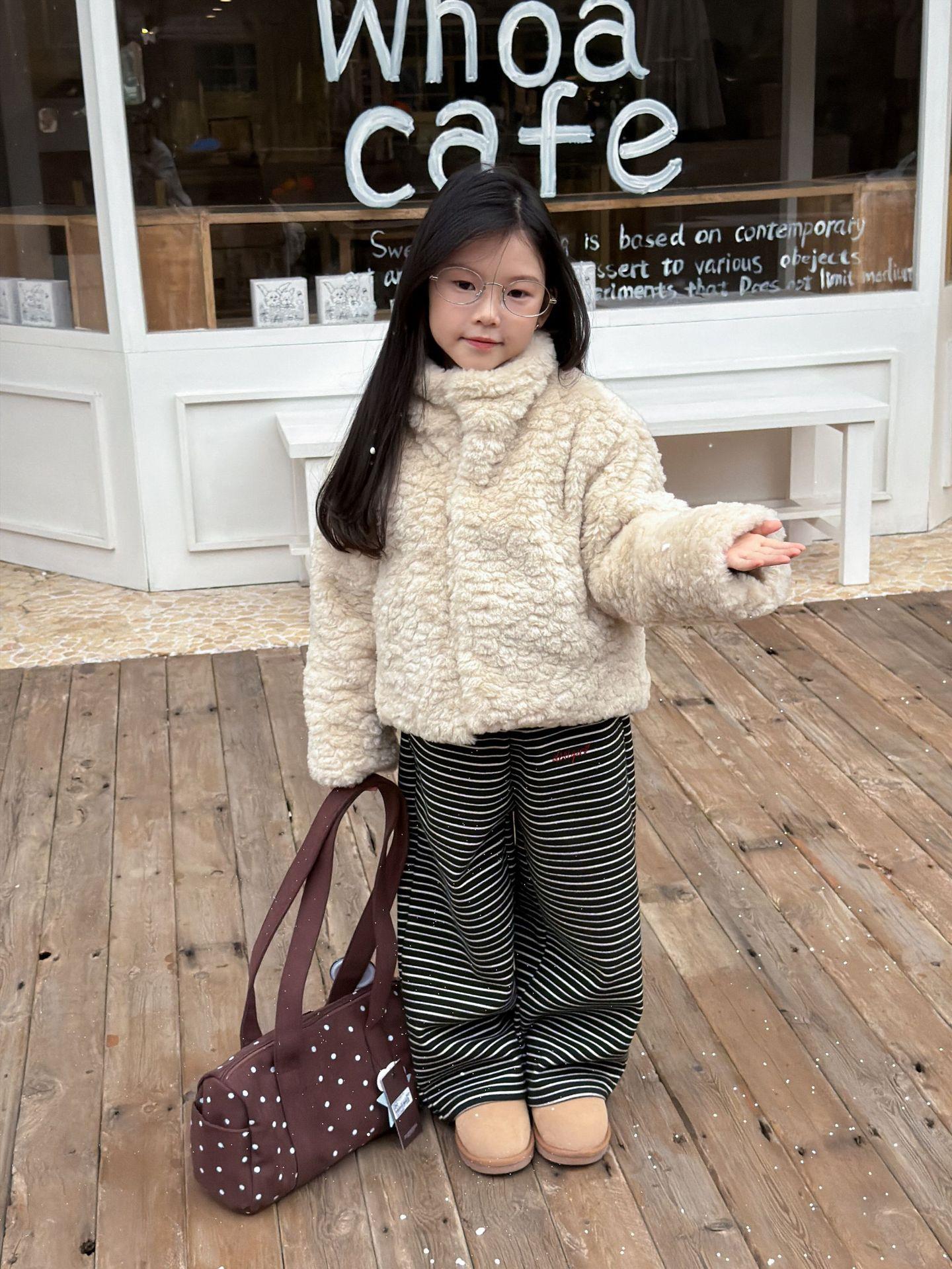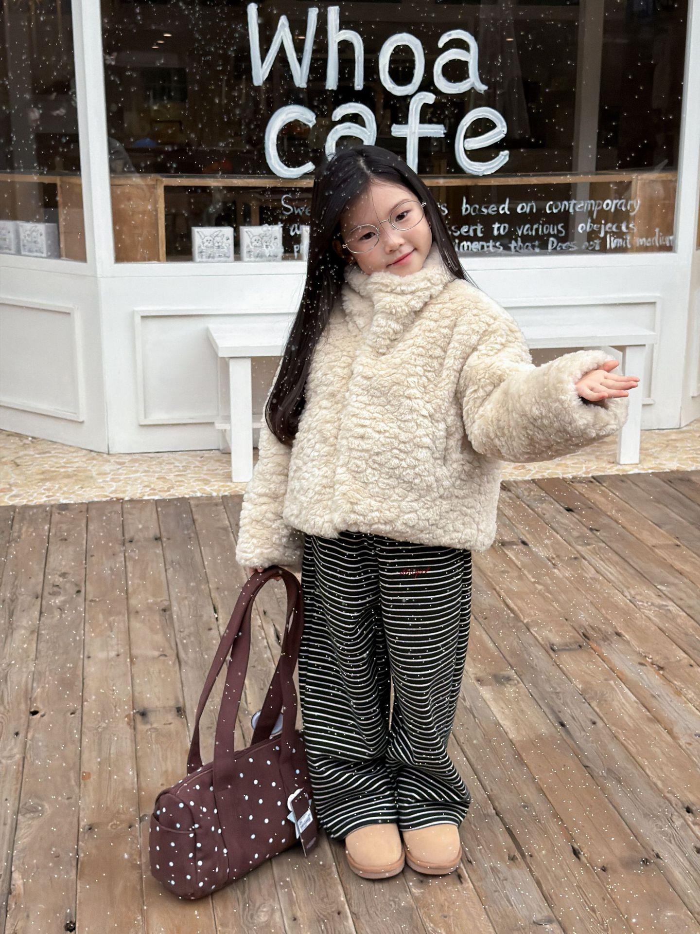 艾摩贝贝女童软萌小短款棉衣时髦保暖夹棉毛绒立领外套,冬日氛围感担当!