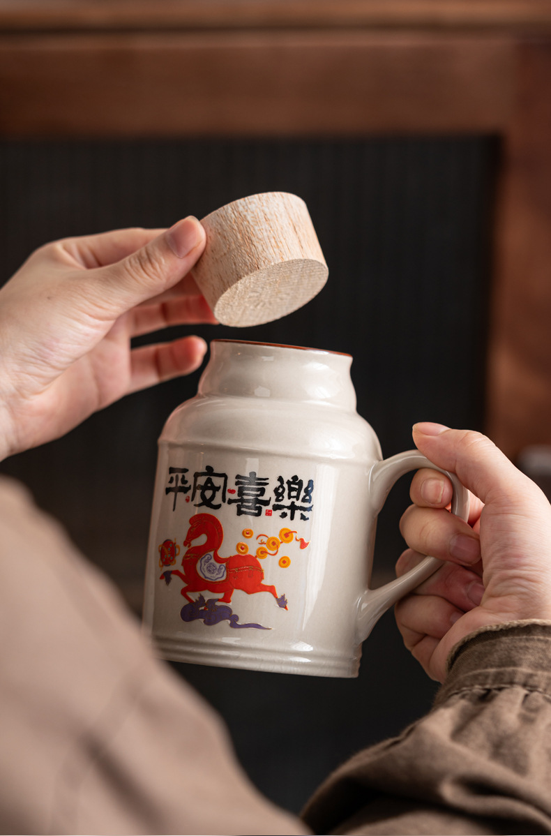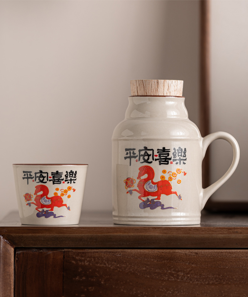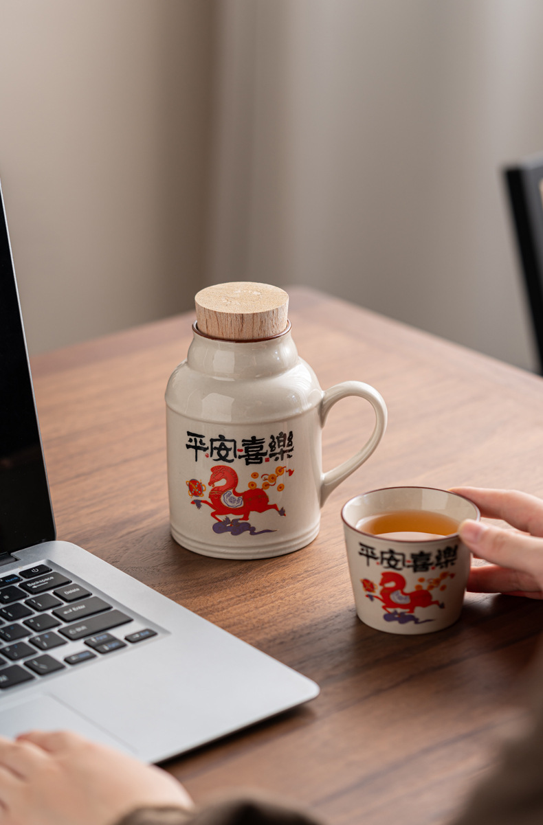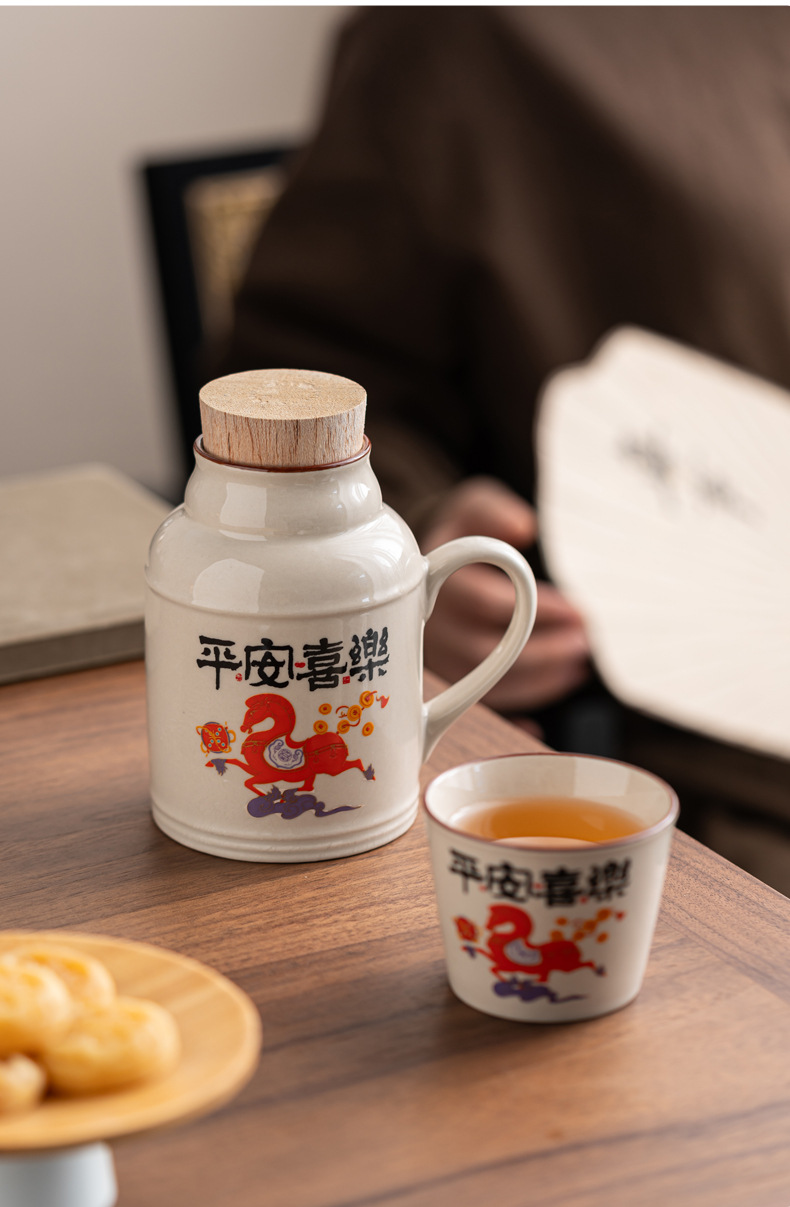 【精美马年图案❗️饮茶方便居家百搭】马克杯创意高颜值平安喜乐陶瓷水杯套装伴手礼国潮礼品马年小暖壶。jd