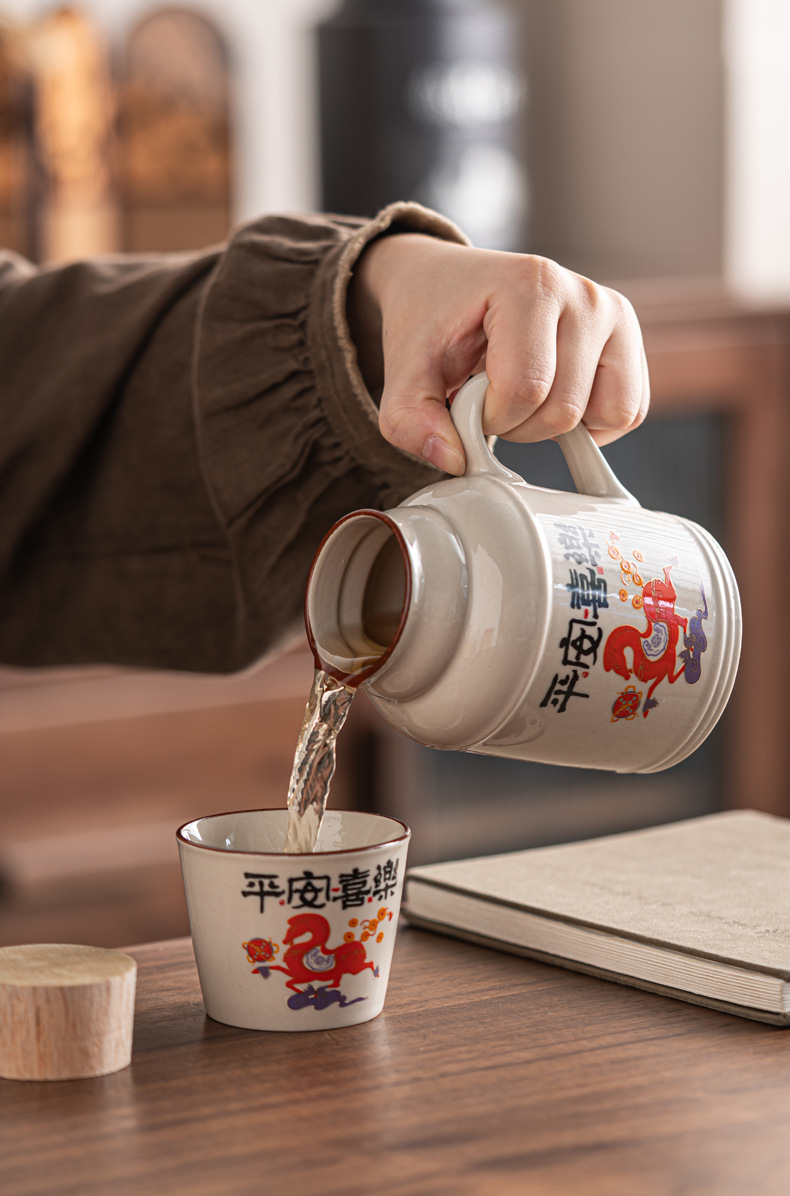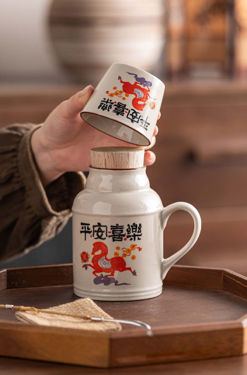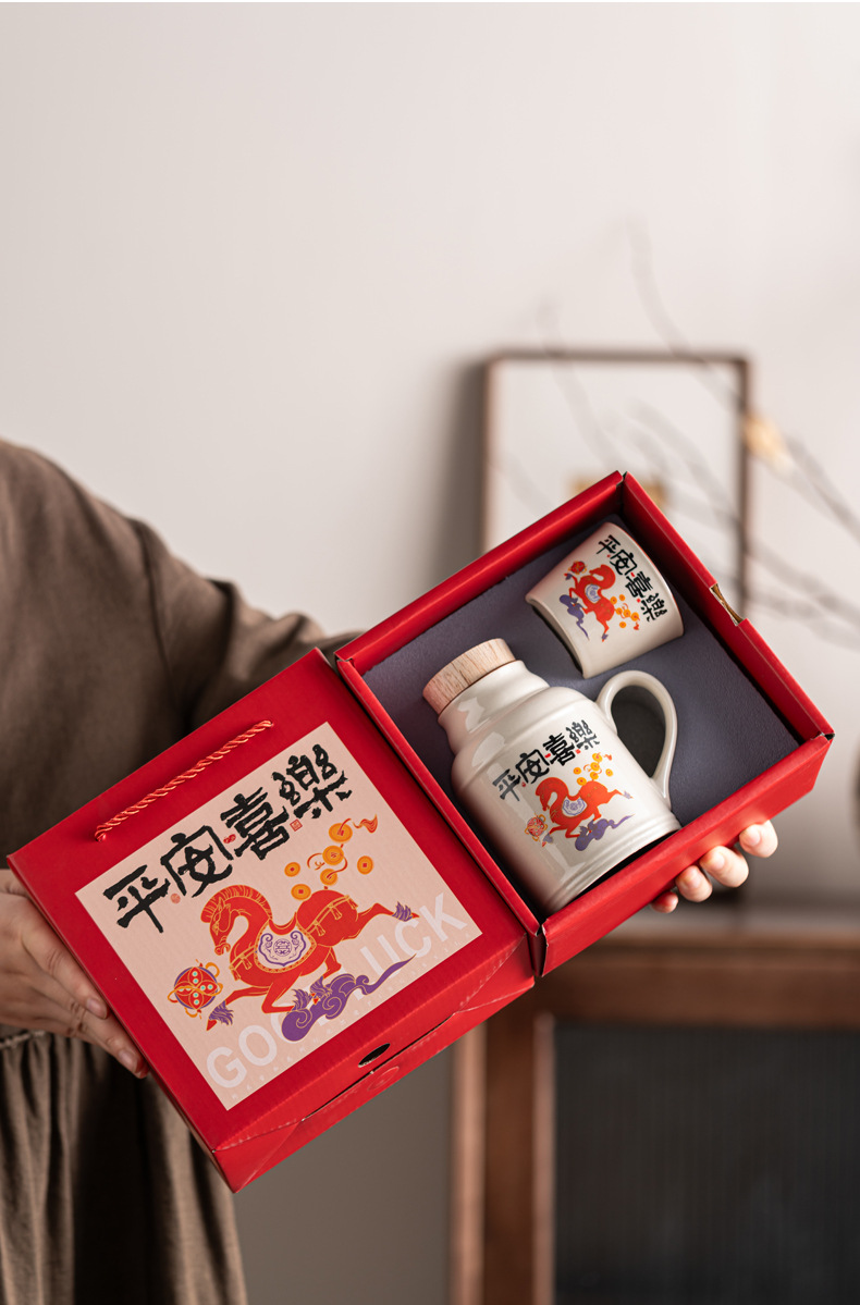 【精美马年图案❗️饮茶方便居家百搭】马克杯创意高颜值平安喜乐陶瓷水杯套装伴手礼国潮礼品马年小暖壶。jd