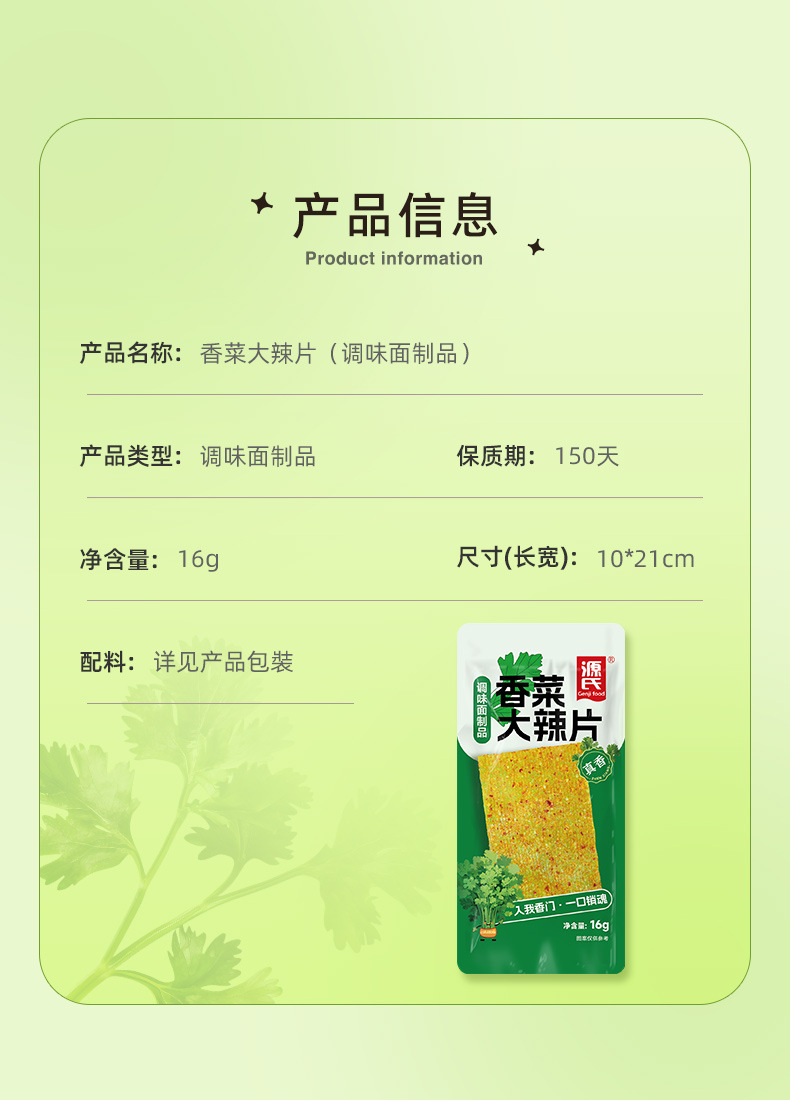 【29.9抢10包❗️香菜大辣片】一片销魂,油香四溢,爽辣快意,耐撕耐嚼,柔韧劲道,童年怀旧零食香菜大辣片休闲食品16g*10包
