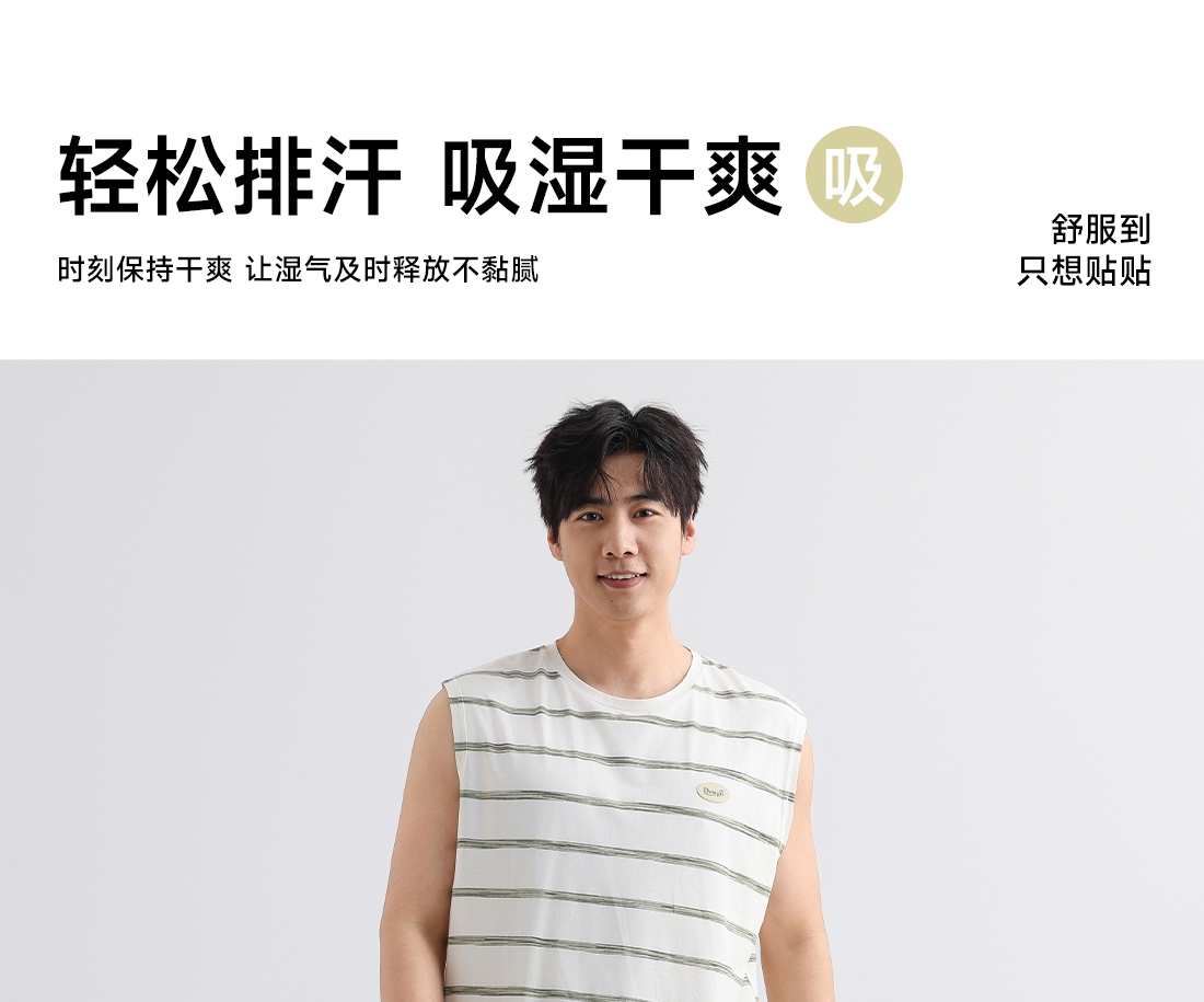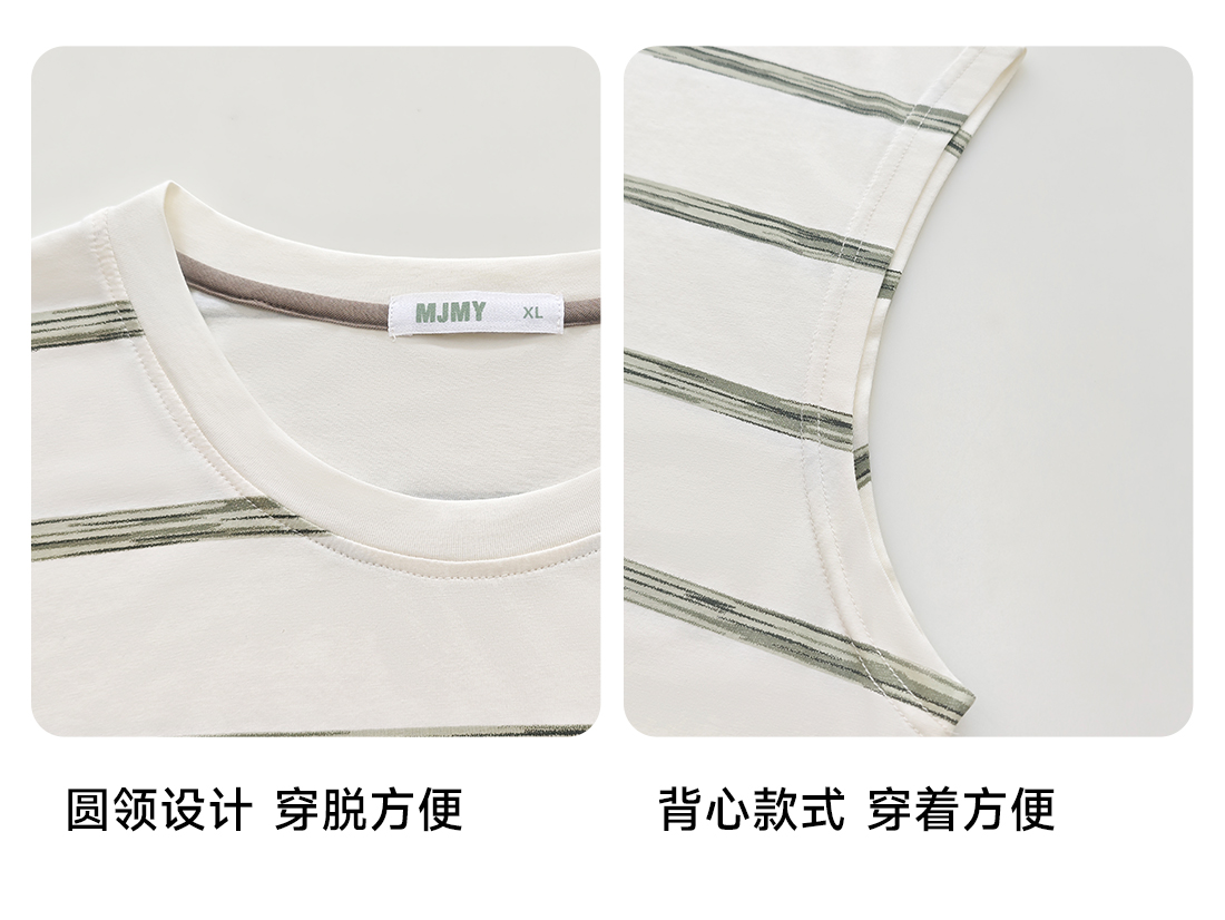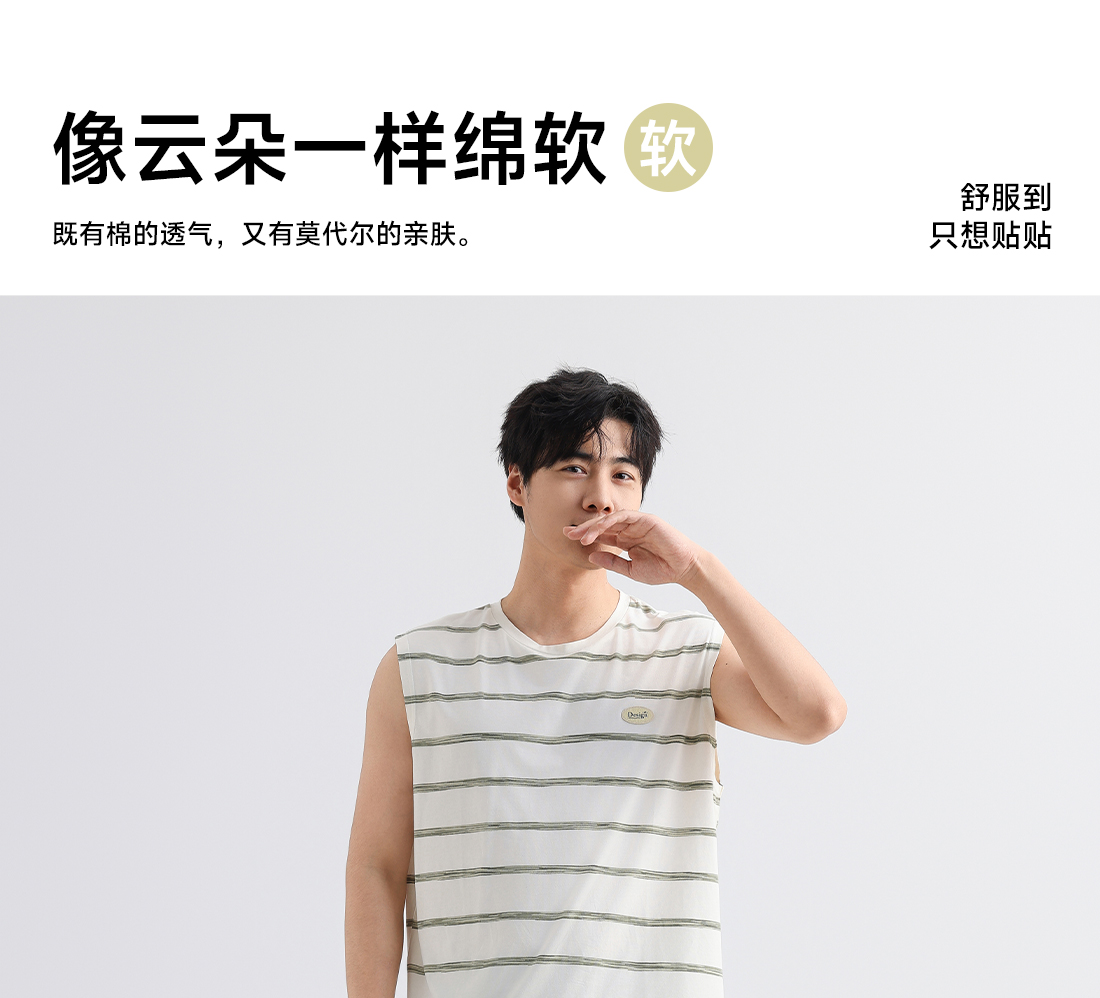 美季美优睡衣男士2025新款夏季棉莫条纹背心短裤家居服套装可外穿