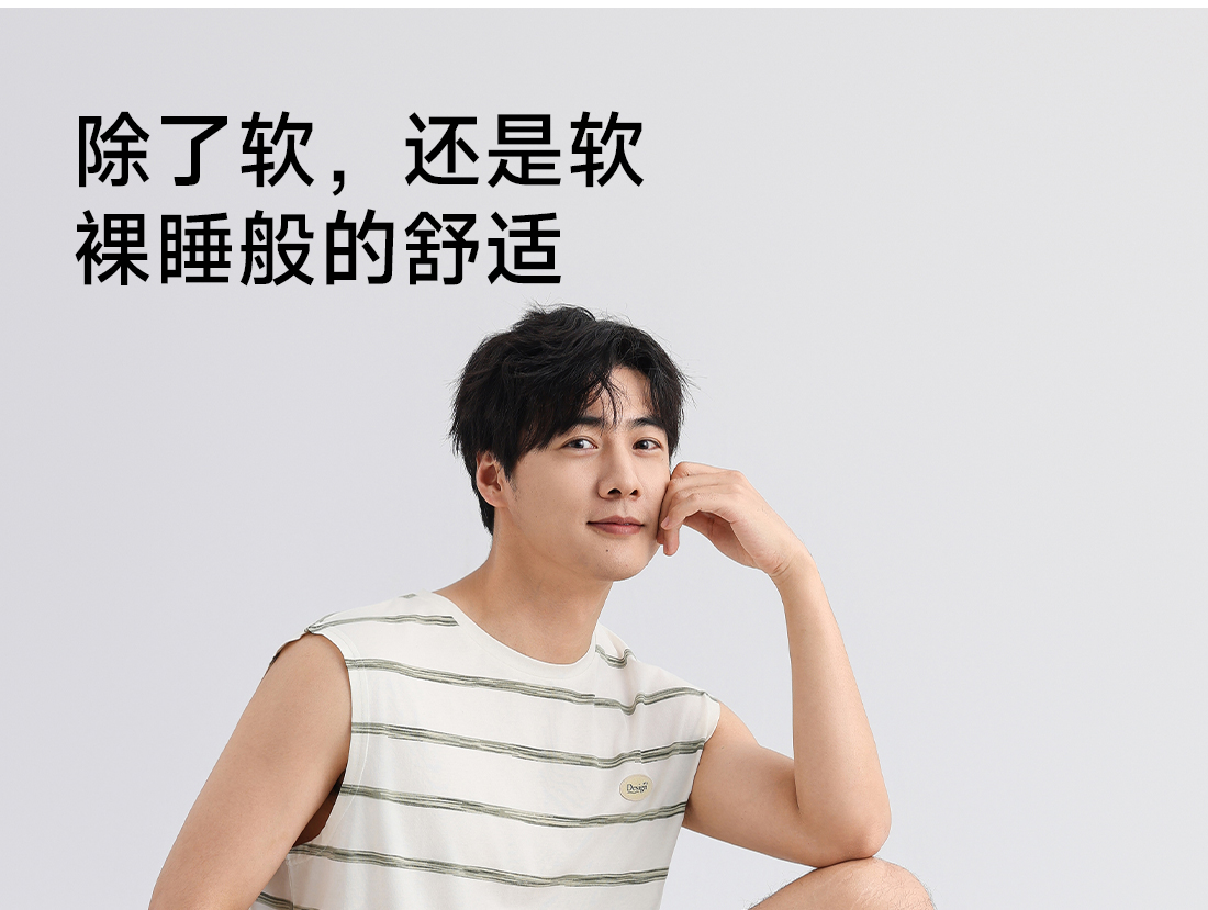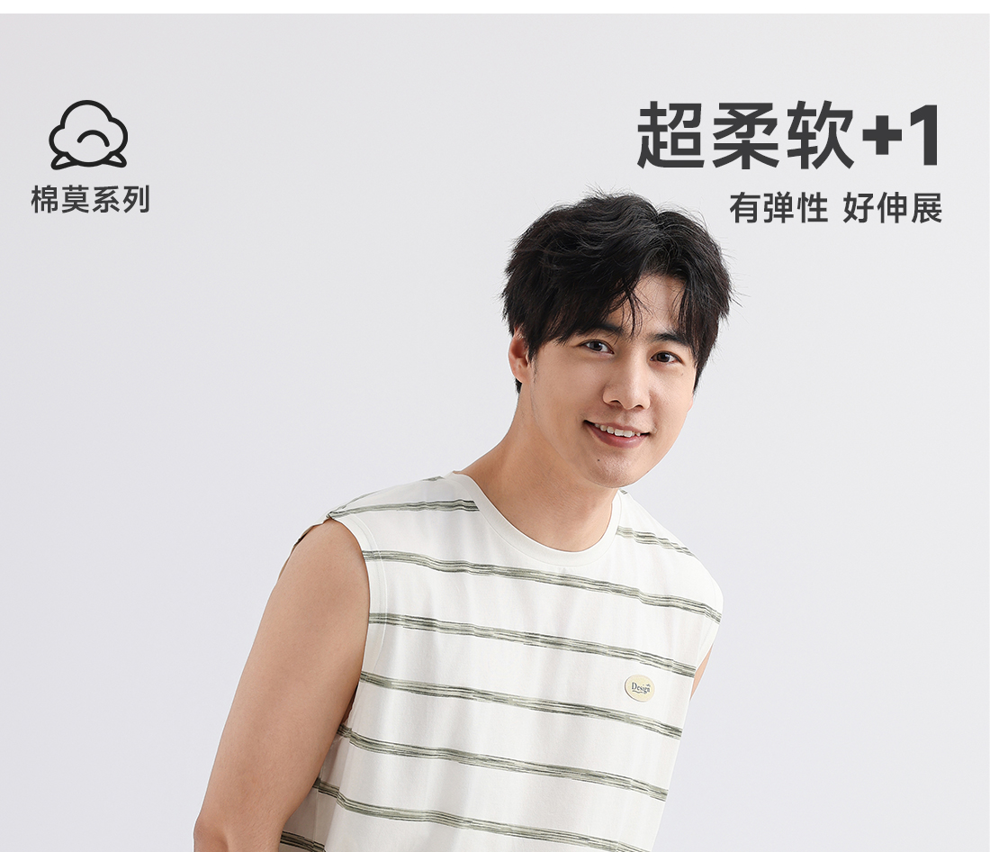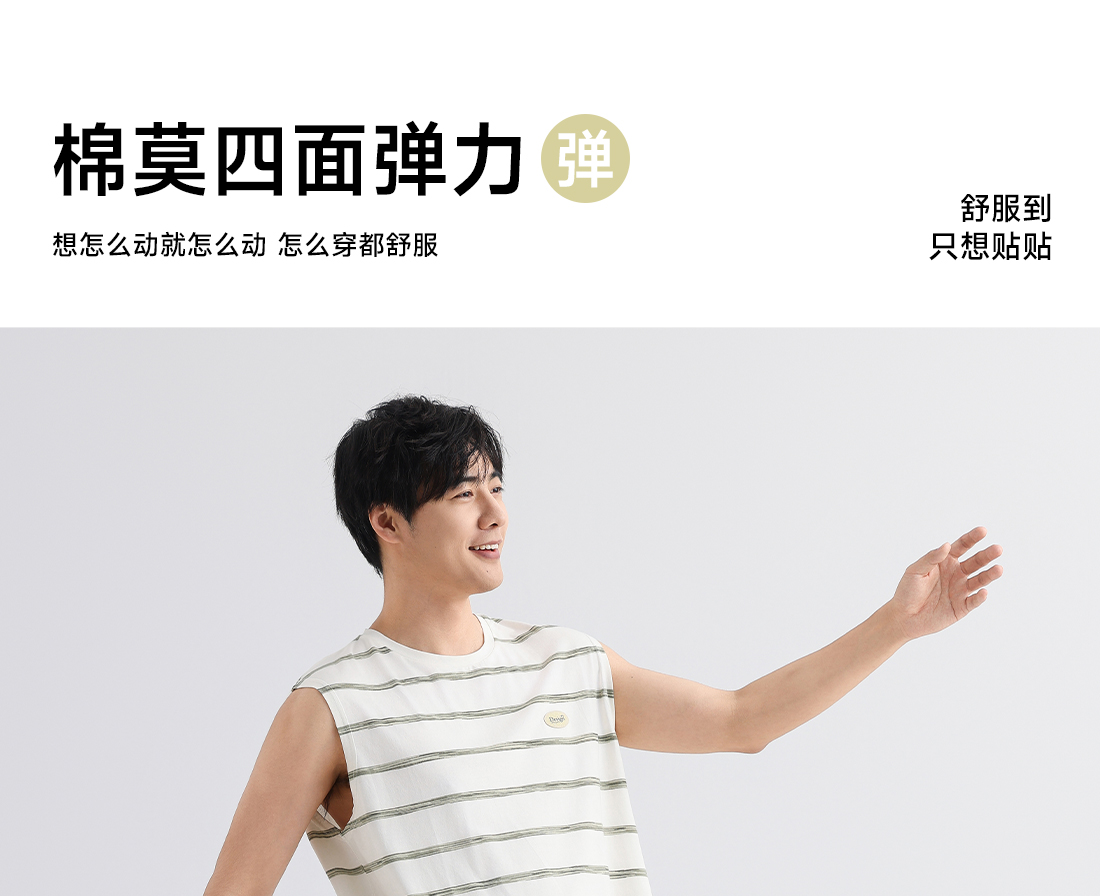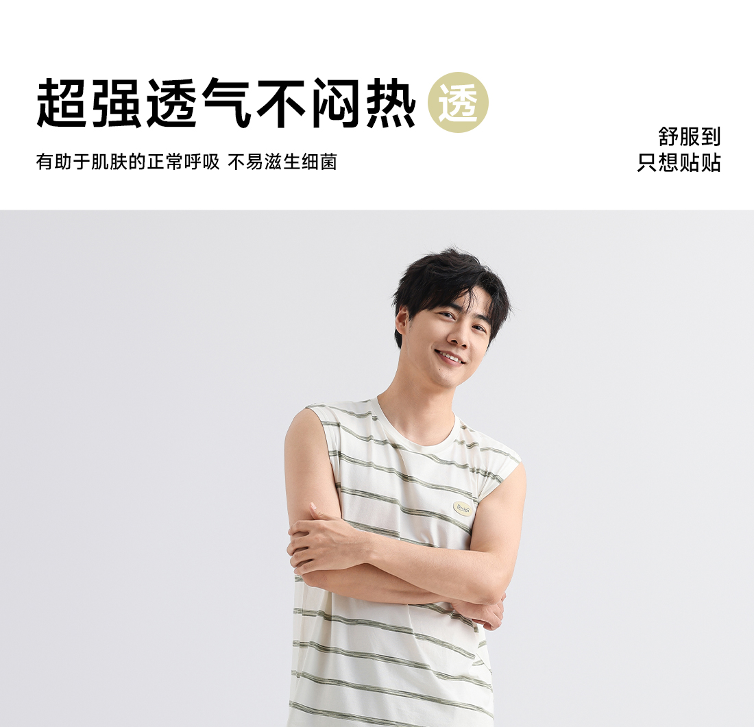 美季美优睡衣男士2025新款夏季棉莫条纹背心短裤家居服套装可外穿