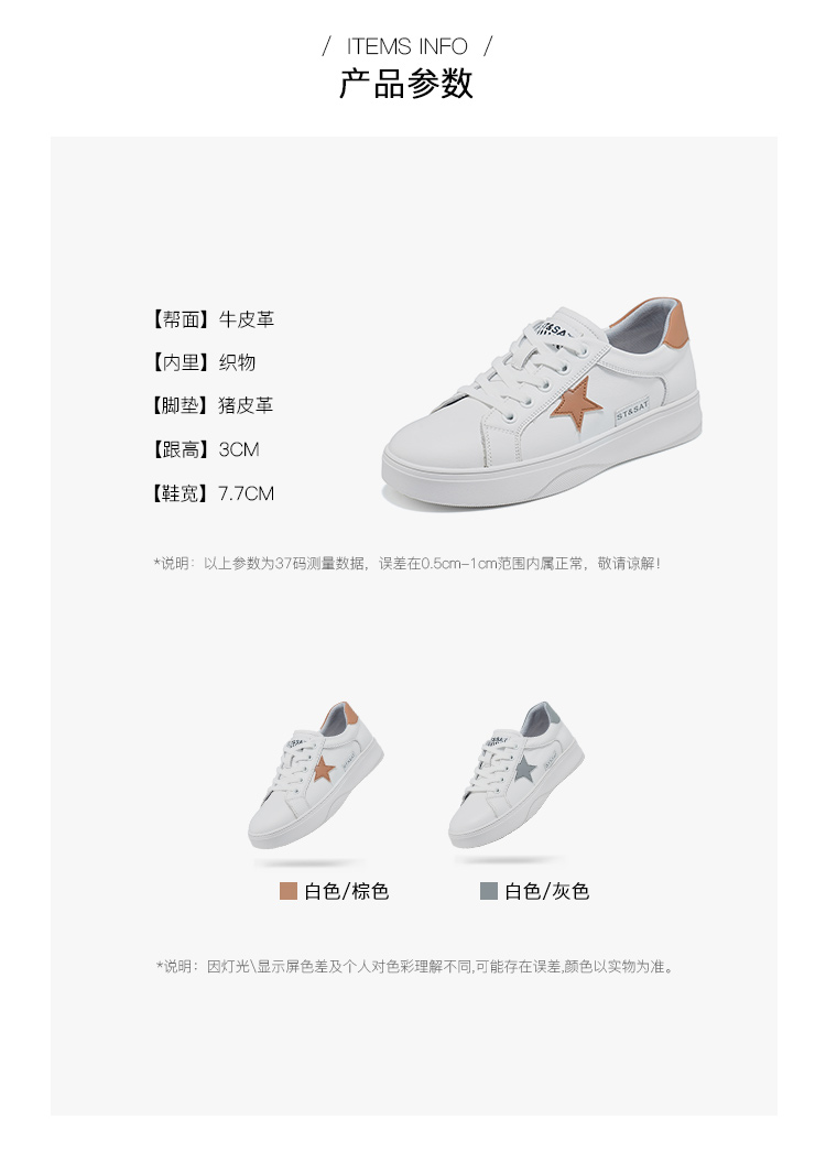 星期六经典百搭星星运动小白鞋SS33112013