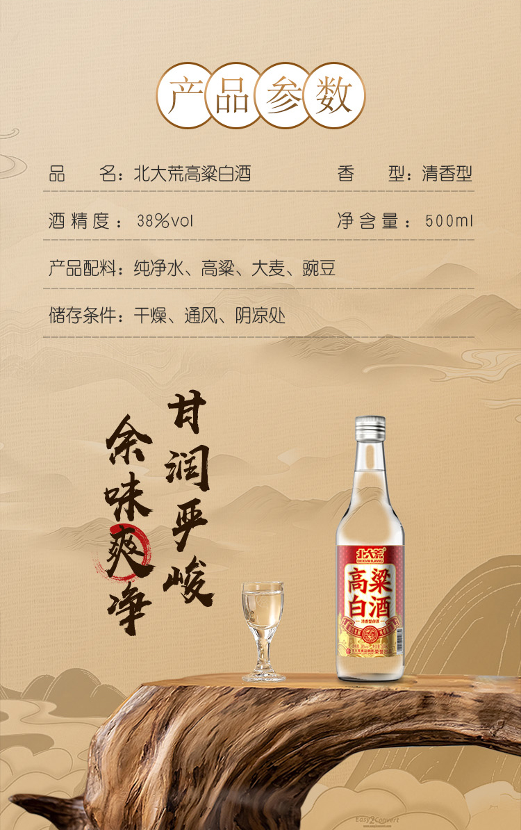 【中国农垦】北大荒高粱白酒(清香38°)500ml*2瓶